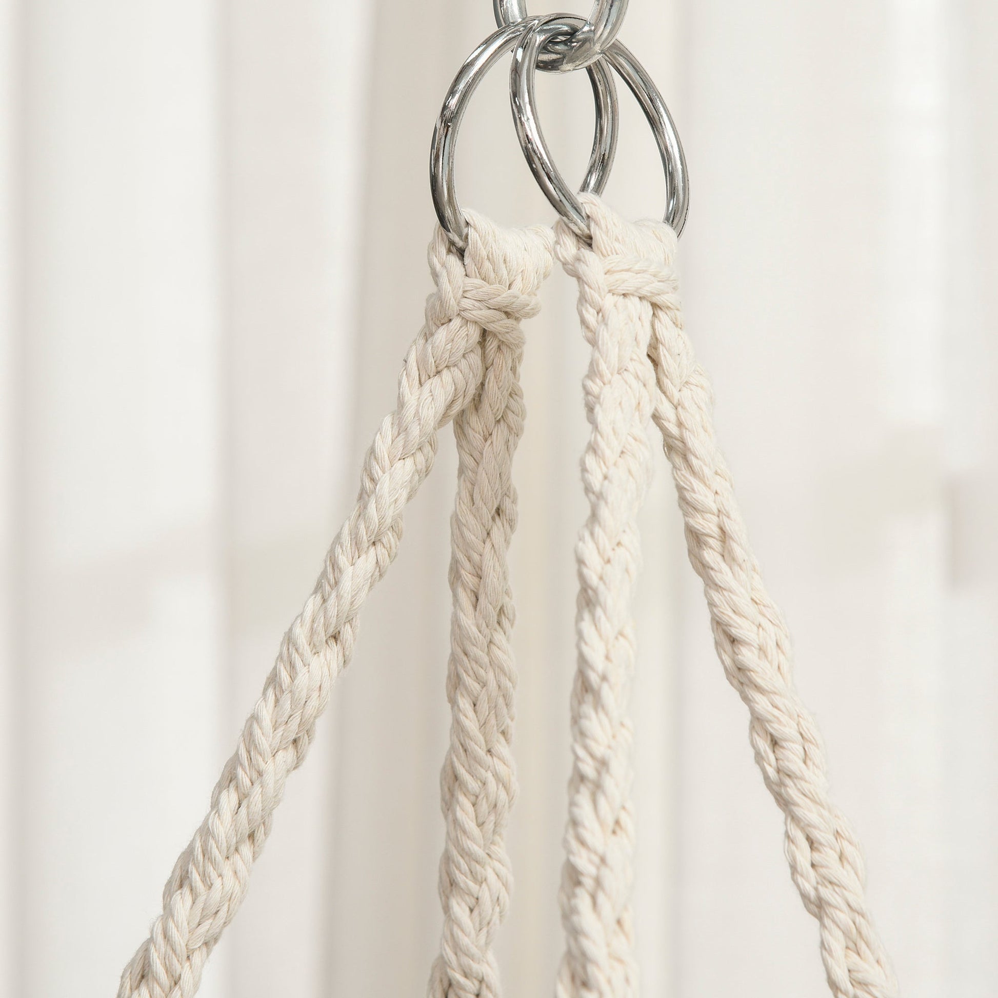 A seat to relax the day away in - where ver you choose to - this single hanging rope chair from Outsunny. The boho style is pretty and elegant, showcasing fringe tassels and wrapped in rope. The metal frame of the garden hammock chair is strong for support, the curved back and armrests keep you supported. And the hanging seat comes with a spacious seat to keep you comfortable.