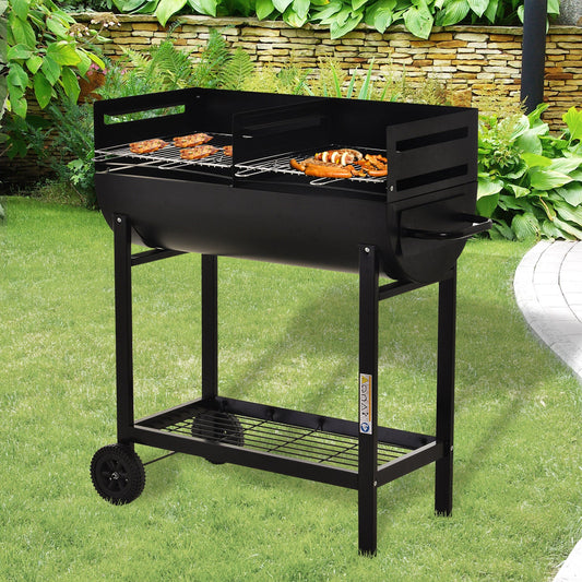 Charcoal Trolley BBQ Barbecue Grill Patio Camping Picnic Garden Party Outdoor Cooking with Lid