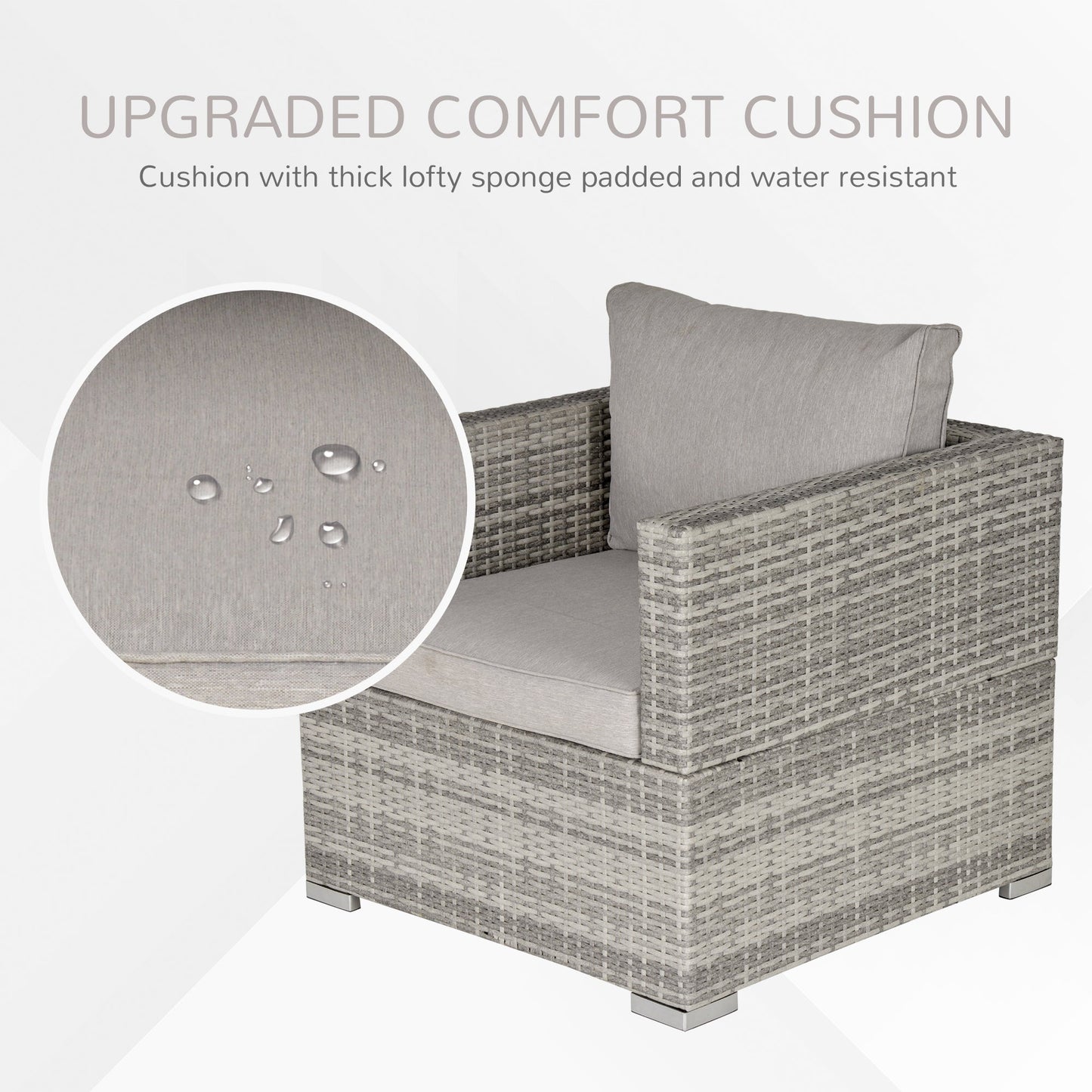 Give yourself the best seat in the garden with the rattan garden chairs from Outsunny. Using powder coated steel for the frame of the comfy garden chairs for a strong main structure, it is wrapped in pe wicker for extra durability and making it suitable for outdoor use. The rattan garden sofa is fitted with thick and plush cushions for comfort, both with washable covers for hygiene. It's finished with a high back and armrests for plenty of support. A great way to sit back and relax in the sun.