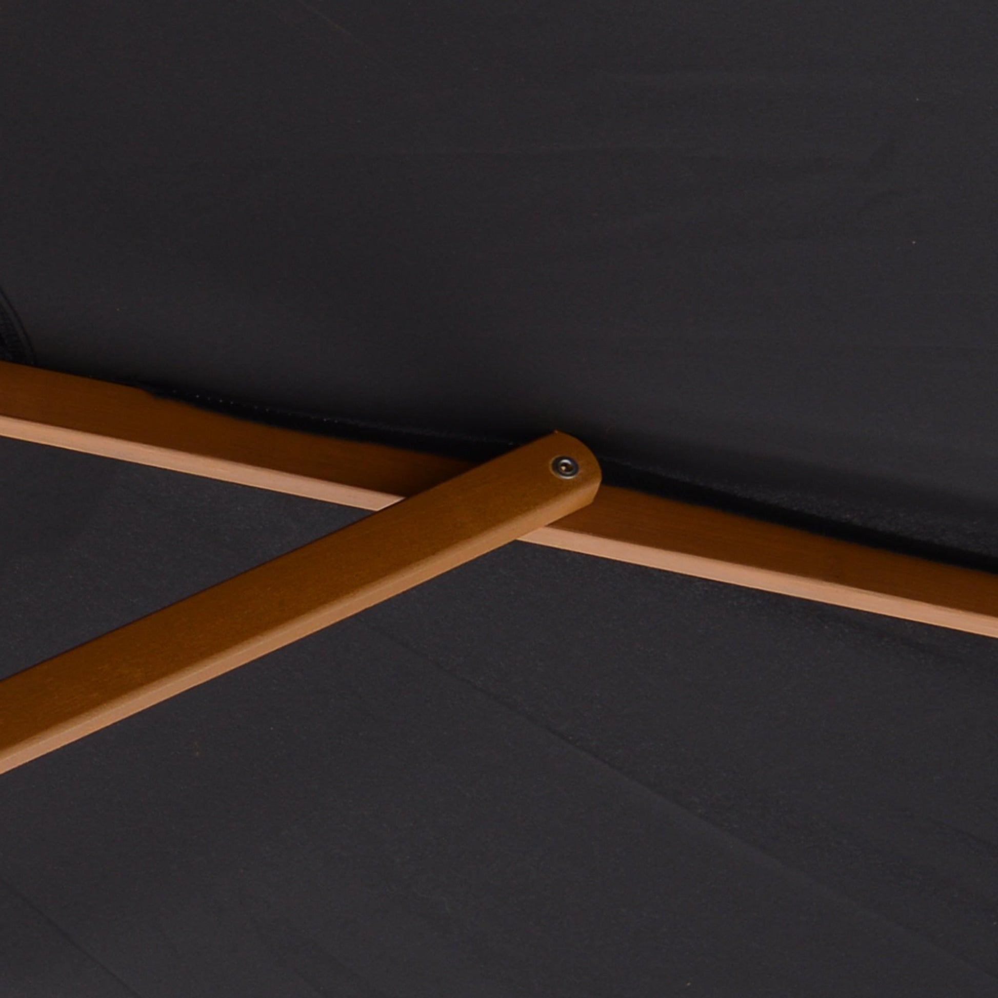 - 2.5m parasol supported by 6 wooden ribs.
