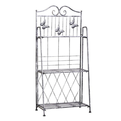 Add style and storage to your home with this charming tiered plant stand from Outsunny. This 3-tiered plant rack is built with a gorgeous sturdy metal scrollwork frame, which brings a touch of elegance to your porch, patio, interior space or wherever you want to utilize it. It is perfect for holding everything from books to decorative candles. Easy to fold down and store in the corner space when not in use. With this smart gadget, you can easily keep your surrounding area neat and tidy!