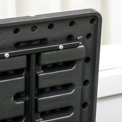 Tough and beautiful outdoor storage comes in the form of this Outsunny piece. The 366 litre capacity, sized at 122.4cm x 62cm makes it a generously-sized piece: plenty of holding room for garden accessories, tools and more. Made from plastic in a double-wall construction, this box is strong, with a smooth-opening lid to make everything easy for you. Comes with two handles and rollers so you can move it around easily, whether empty or full.