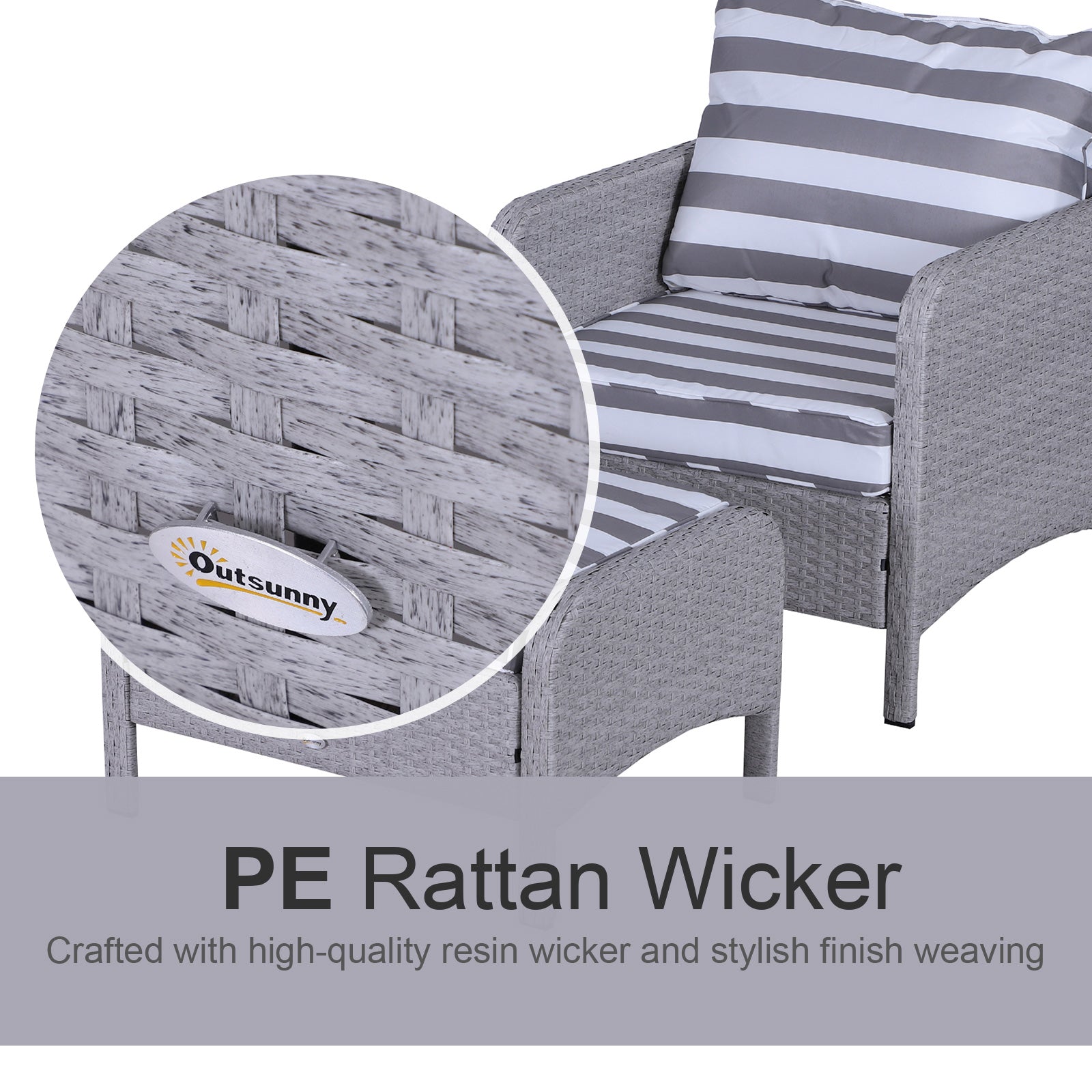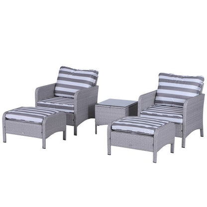 Sit back and relax in complete comfort with this 2 seater rattan sofa from Outsunny. Formed of five pieces, the set features two armchairs, two footstools and a matching coffee table. Made from hand woven PE rattan, each piece is weather resistant and low maintenance, with a steel frame underneath for extra support and stability. Two plush cushions on each chair ensure you’ll be relaxing comfortably for hours this garden sofa set is a fantastic combination, comfortable and minimal hassle.