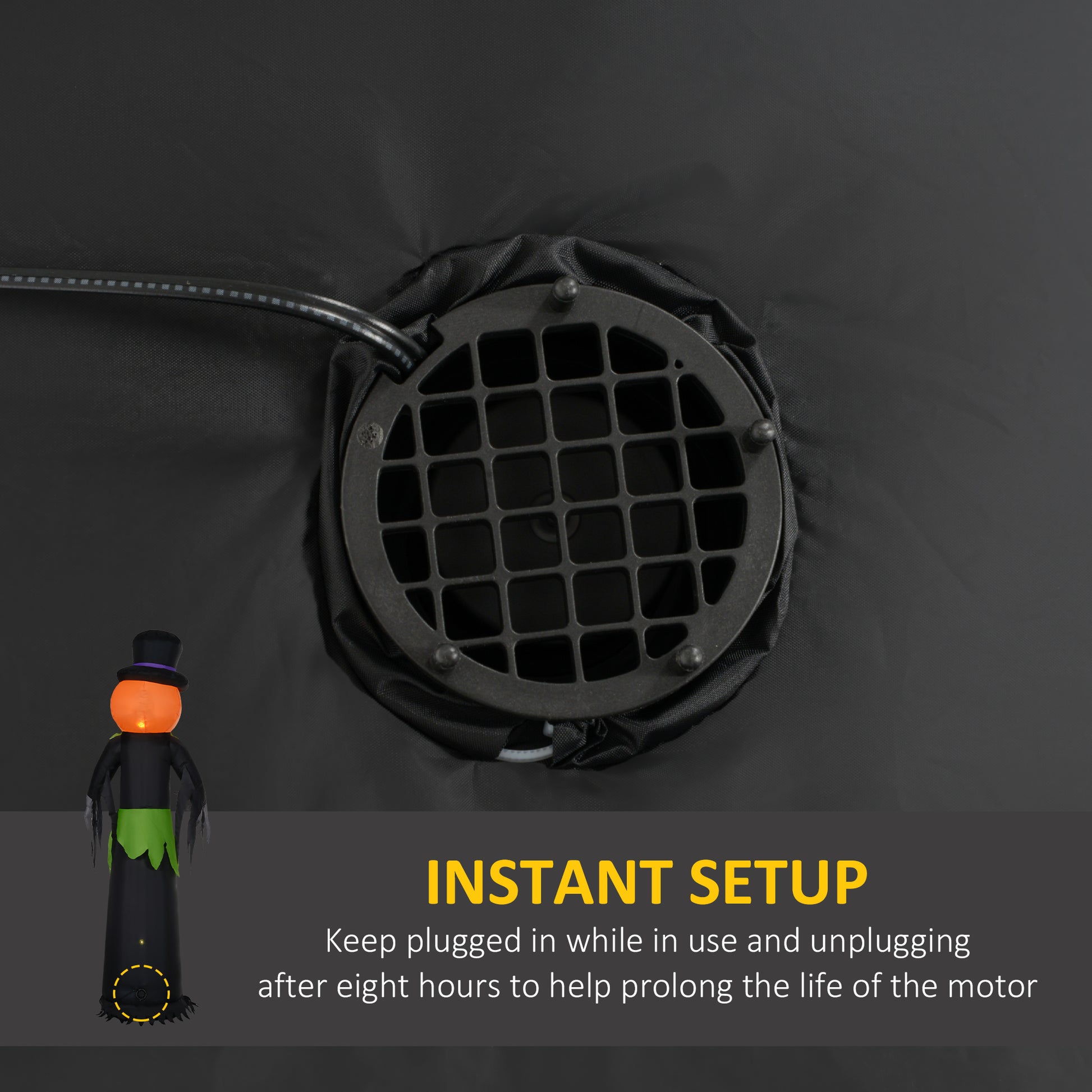 This Pumpkin Man inflatable decoration from Outsunny is an expertly crafted product at a terrific price and great for families that love spending halloween together. Easy to inflate and assemble, this inflatable ornament creates an impressive display that will wow your neighbours. Why not step up your Halloween decor to the next level with an impressive display piece? Constructed from a lightweight and soft polyester material.