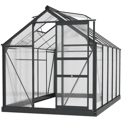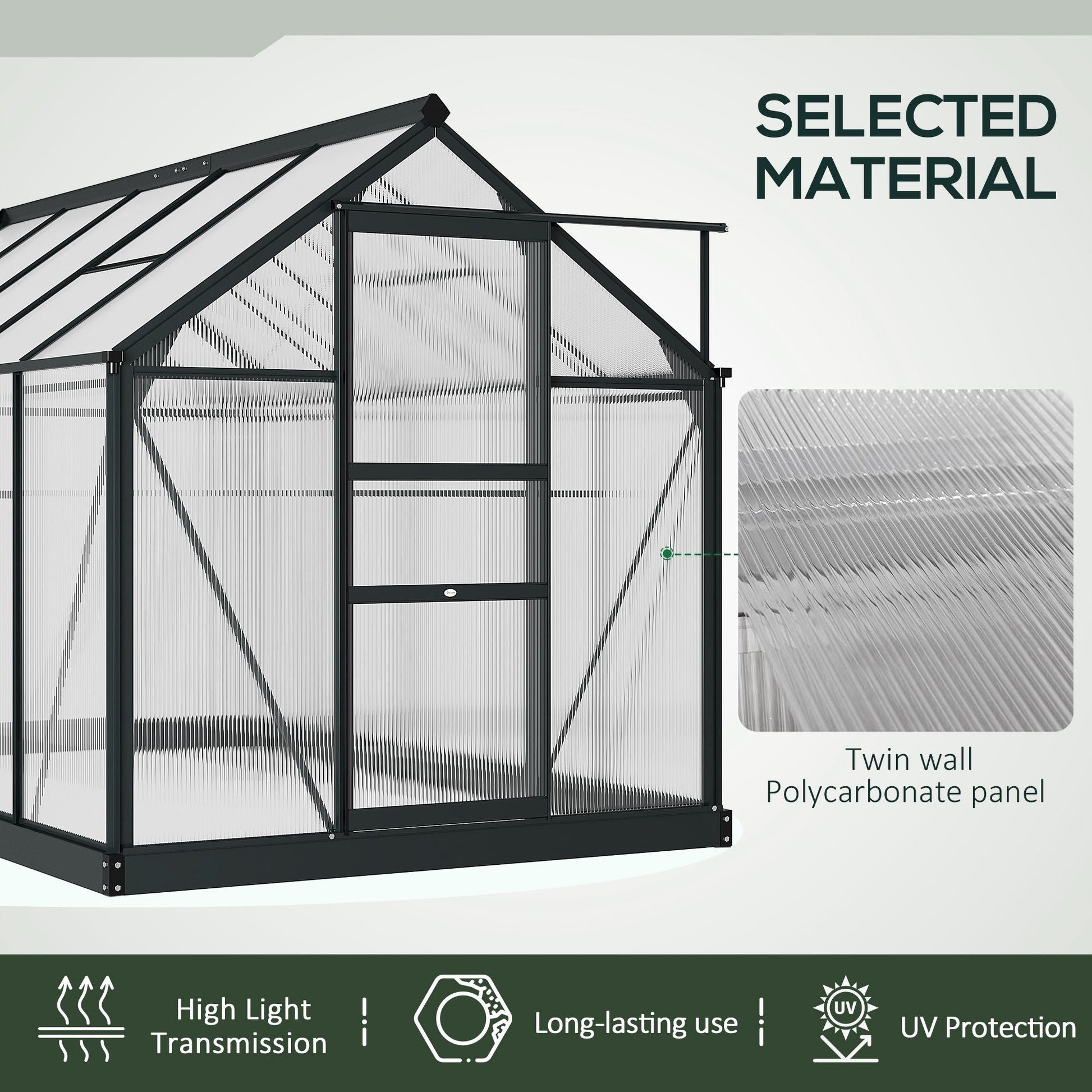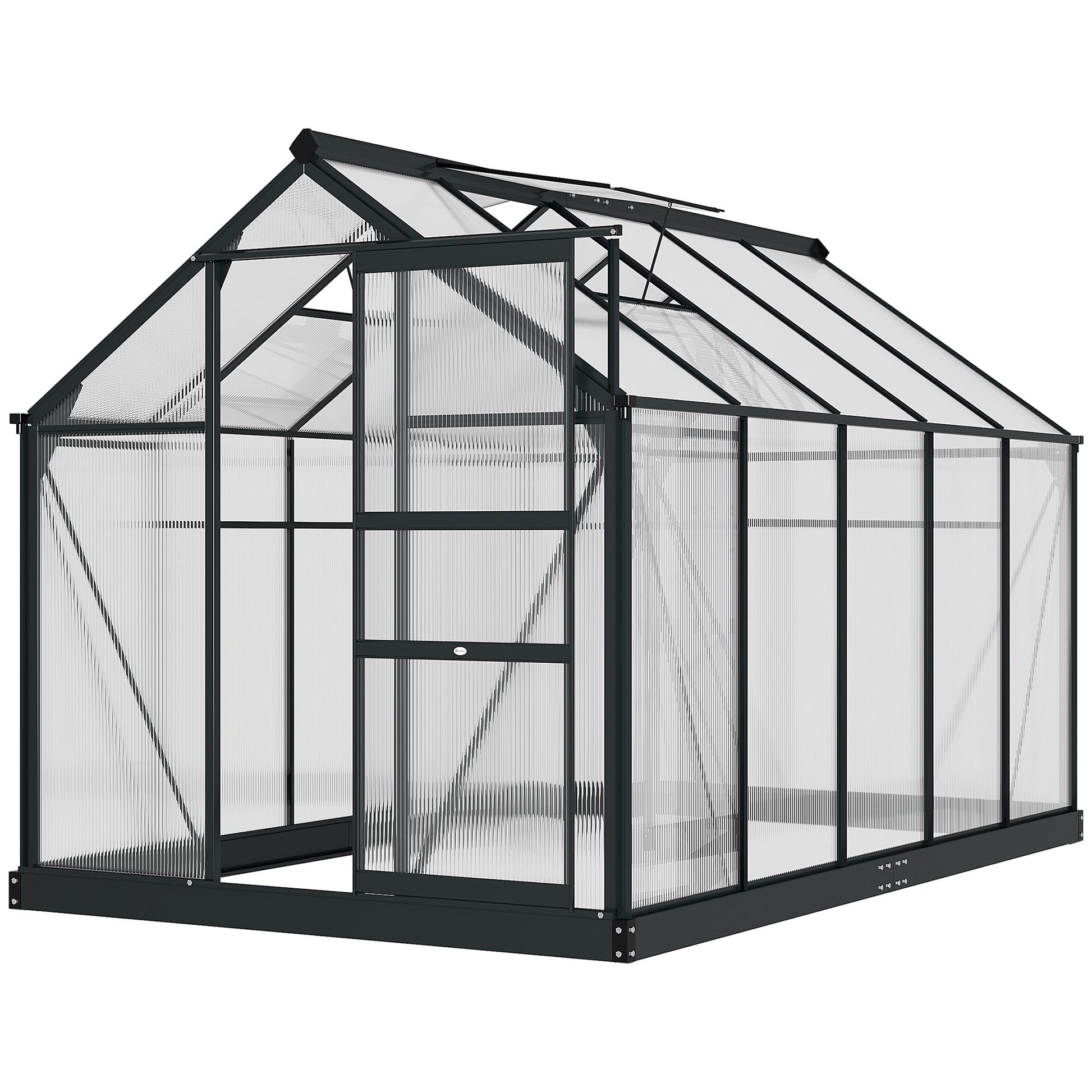 Start and continue the season right with this Outsunny 6ft x 10ft greenhouse. An open, walk-in design means it's easy to enter and leave, whilst giving you the full free space to set it up how you want. A powder-coated aluminium frame means a strong structure, with four ground stakes included to pin to the ground. Features a sliding door for easy access in and out, with a lift-up roof which holds in place - it's easy to let in fresh air, whenever you want.