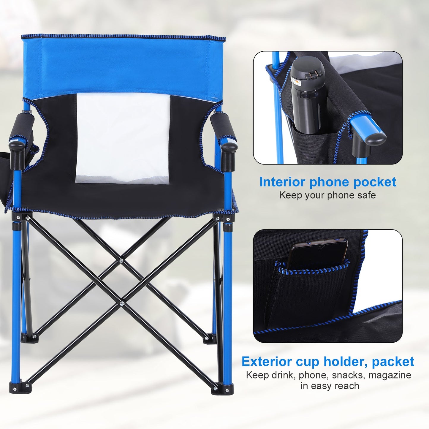 Outsunny Folding Fishing Camping Chair Portable Picnic Armchair Director Seat Oxford Metal Frame With Cup Holder