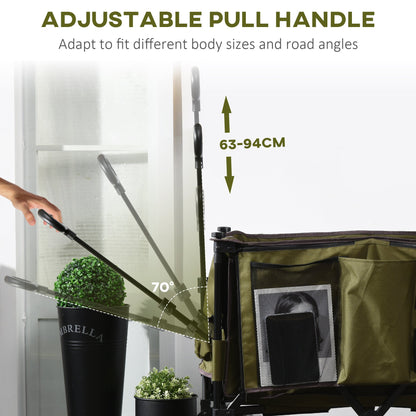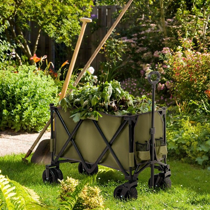 As a beach trolley, for festivals - or general help around the garden and home: this Outsunny trolley is here to help for practically anything. Combining a folding steel frame for a strong structure, it's fitted with a fabric bag to hold everything safely in place. Four wheels to move it around easily; brakes so it stands in place whenever you need. The adjustable handle means you can push and pull this trolley around whenever you want - complete with seven handy outside pockets.