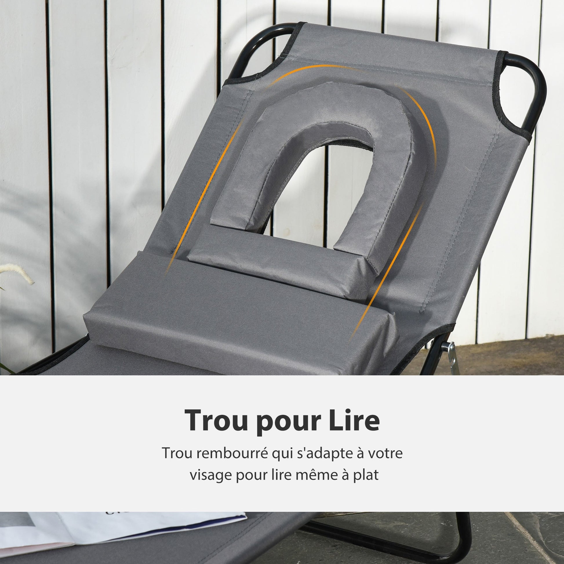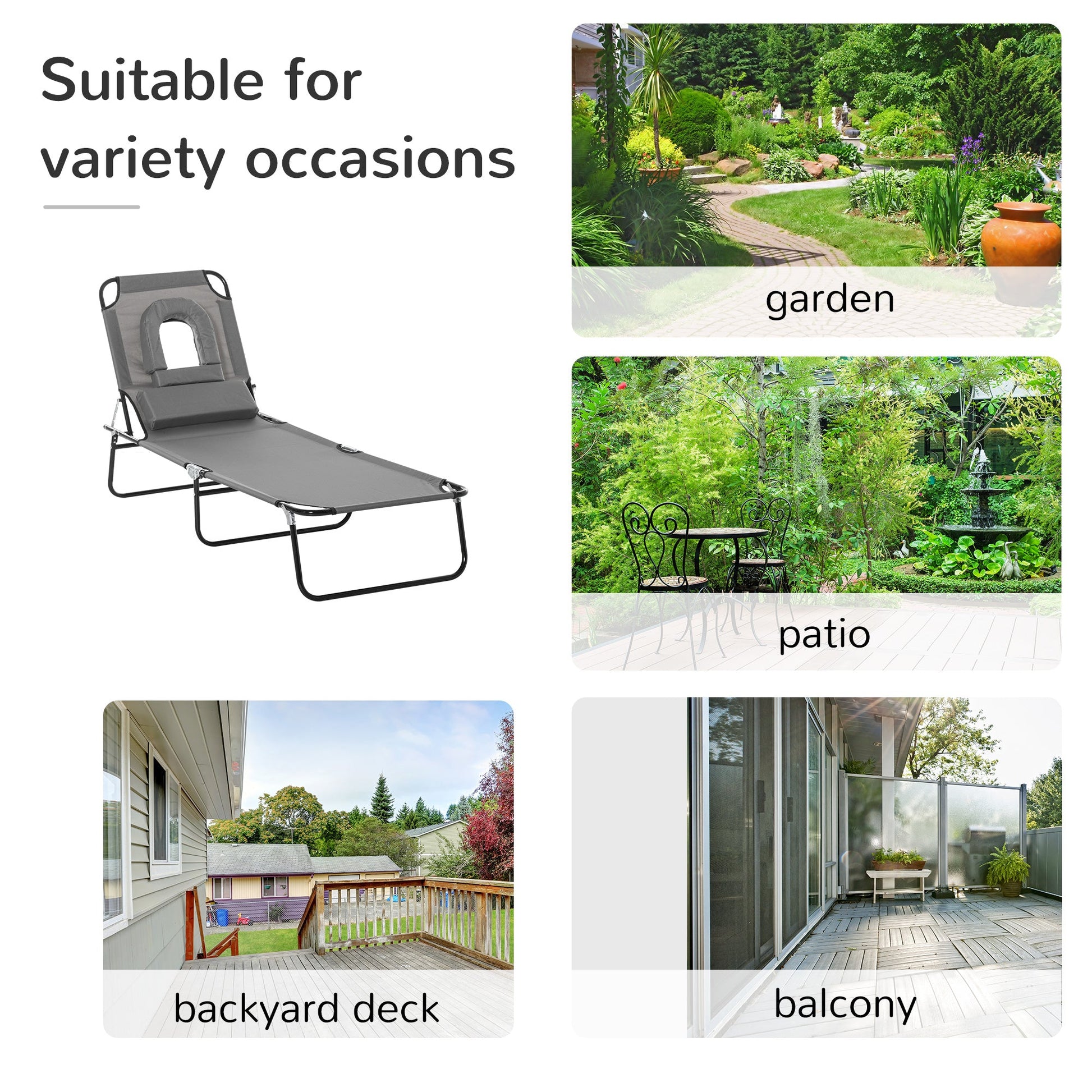 Outsunny Folding Sun Lounger Reclining Chair w/ Pillow Reading Hole Garden Beach