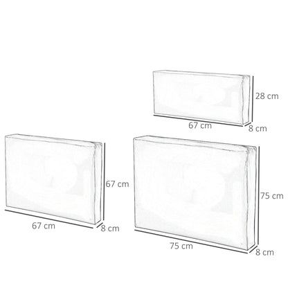New comfort for your outdoor rattan sofa set - these cushions from Outsunny. Comes with seven pieces: three small seat cushions, one big seat cushion and three back cushions. Each cushion is filled with thick cotton for comfort. The polyester covers are breathable and fade-resistant, with a zip fastening to remove and clean easily. Comfort and style in your garden the easy way.