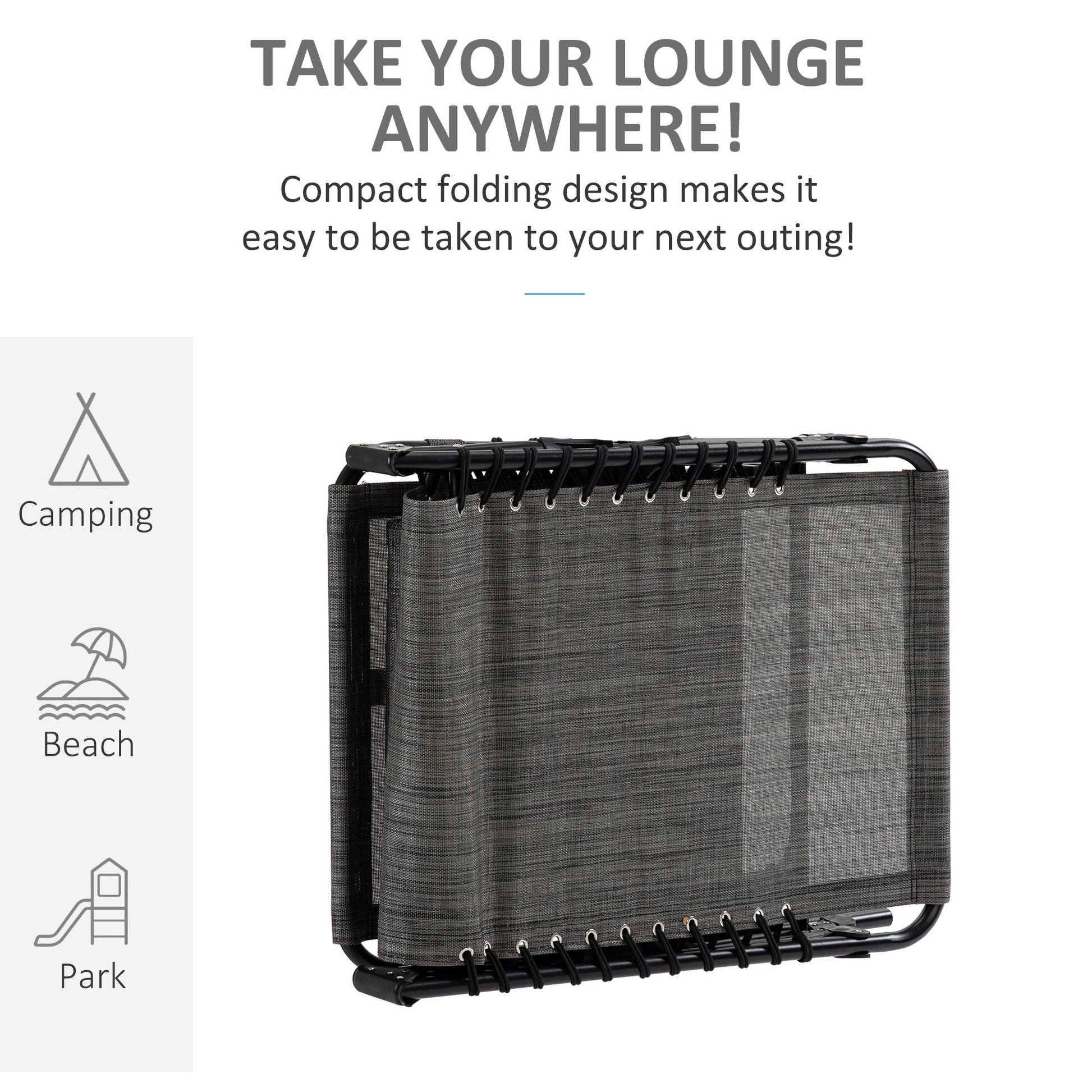 Lounge outdoors the classic way - go for this folding recliner from Outsunny. Sturdy steel frame supports up to 120kg. The back can be adjusted to five positions to relax at a position you want. There's a mesh fabric seat stretched on the frame to hold your body, with a removable pillow on the top to support your head/neck and keep it comfortable. Easily folded into a compact size, making it easy to carry and store. A perfect piece to put in your car for those weekend beach trips.