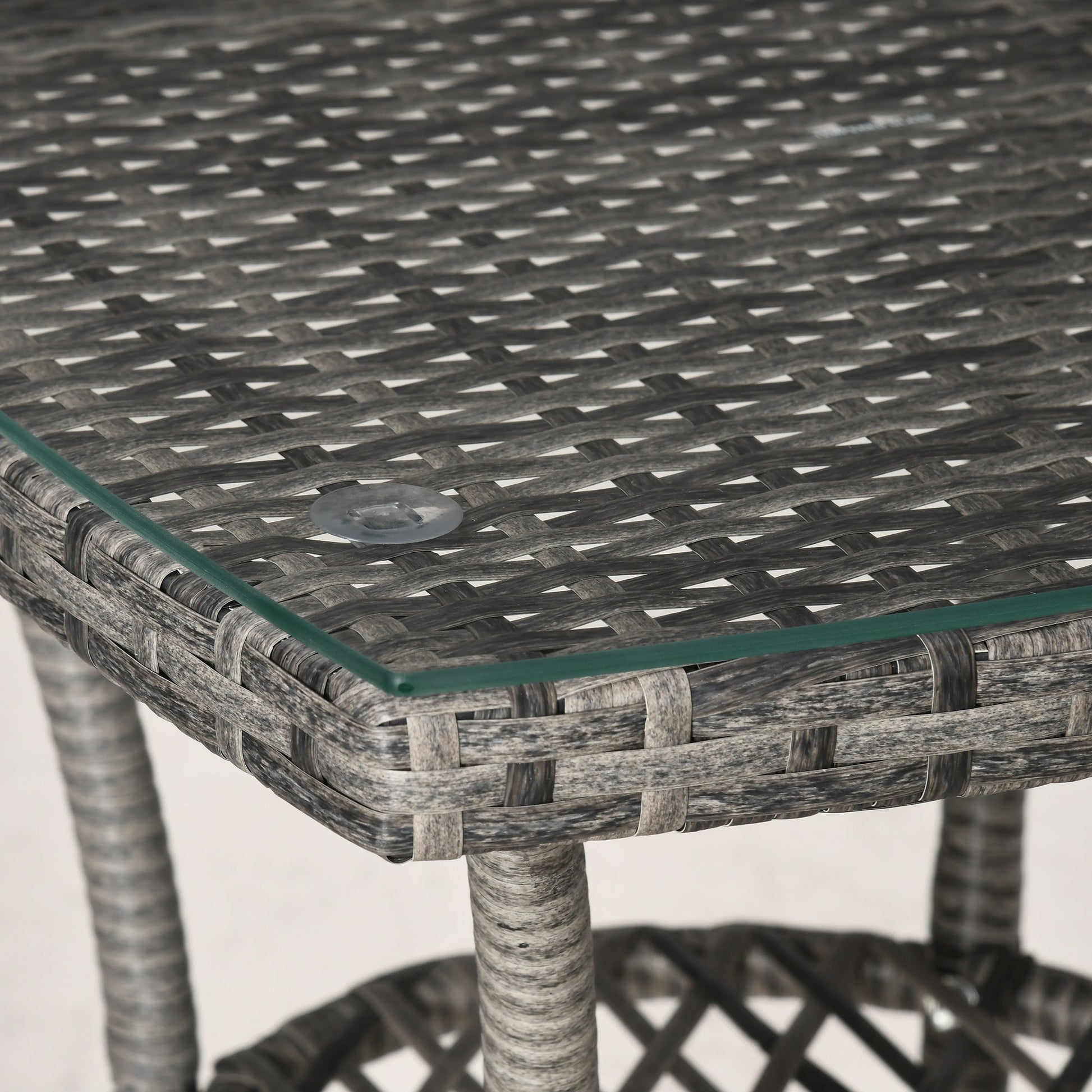 This Outsunny outdoor bistro set is great for any patio, garden, porch and similar spaces. Frames of the rattan bistro set is made from powder coated steel mean a strong structure, wrapped in plastic wicker for garden rattan style. UV and water resistant. Matching table gives a handy side surface, with a safe and sleek glass top. Repeat and use, season after season.
