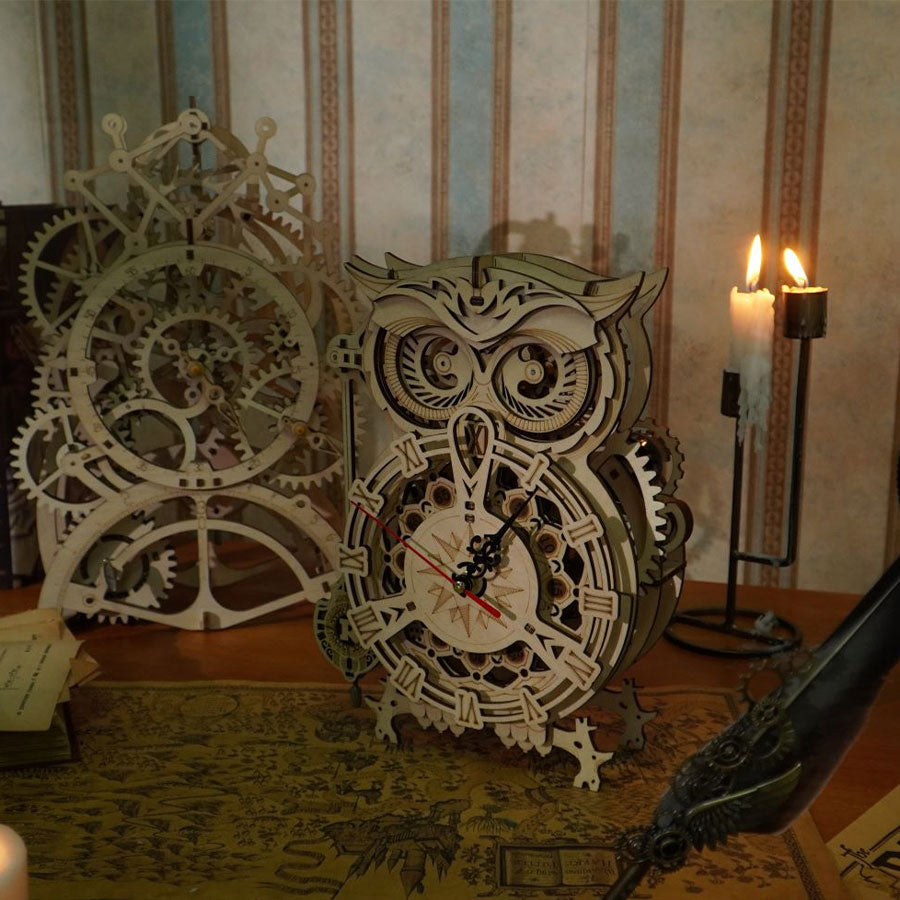 Robotime-ROKR Clock with mechanical gear in a beautiful owl shape and battery movement. It has a wind-up pendulum with wind-up timer. When the time is up, the timer bell will ring! We provide everything you need to build this 3D Mechanical Gears Wooden Puzzle Kit. Have fun assembling your own watch!