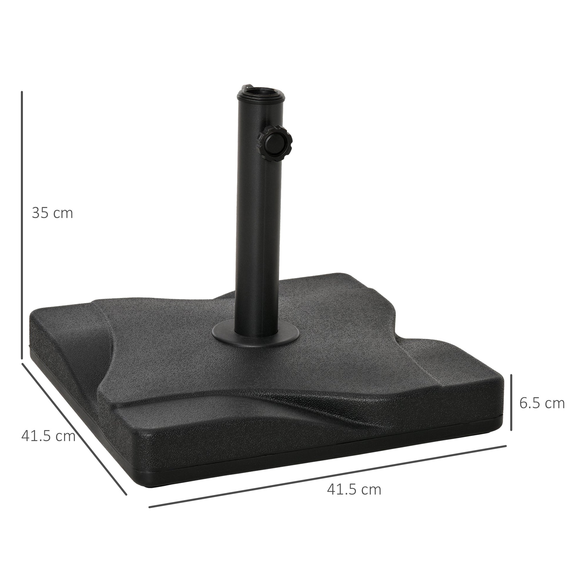 Keep parasol umbrellas stylishly in place with this base from Outsunny. Using a strong blend of a thick plastic shell, with a cement filling, it weighs 20kg to effectively keep your sun shade in place whilst you relax. On the top, a shallow square blended into the bottom base sits, giving it a subtly stand-out look you’ll love for years down the line. It is finished with a screw fastening on the pole holder to secure poles with diameters of 35mm, 38mm and 48mm.
