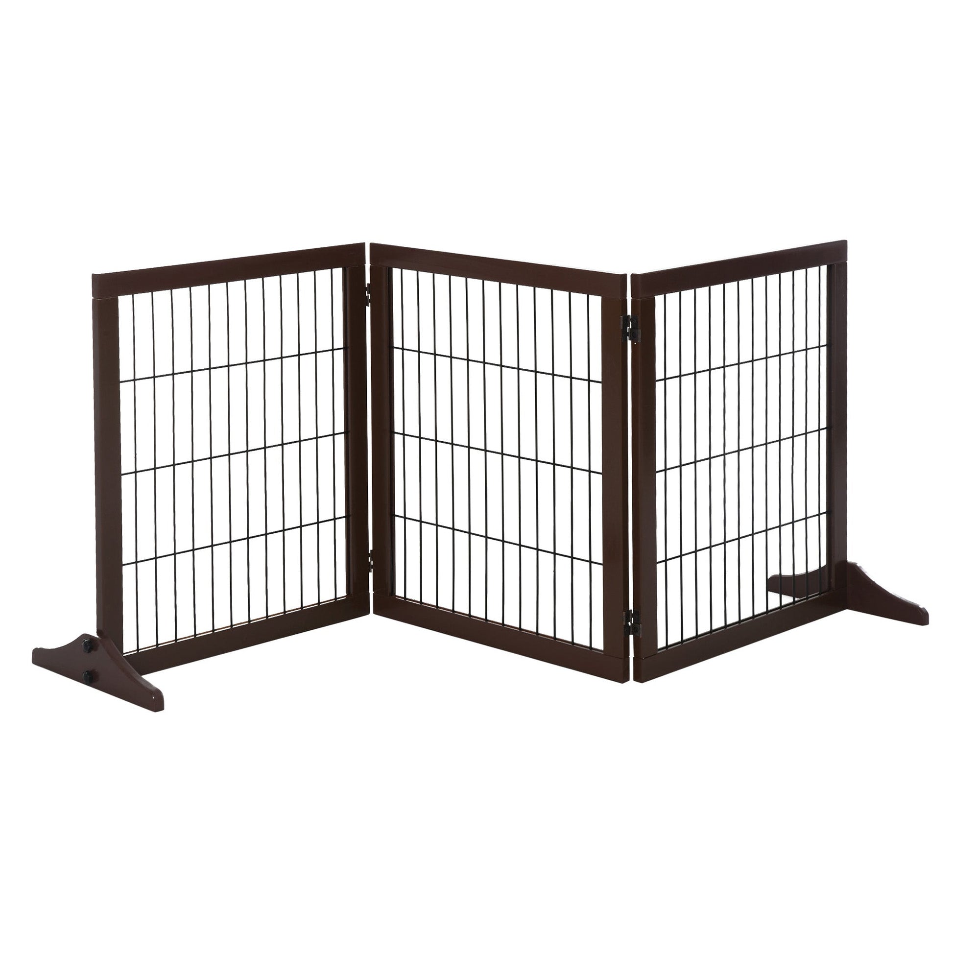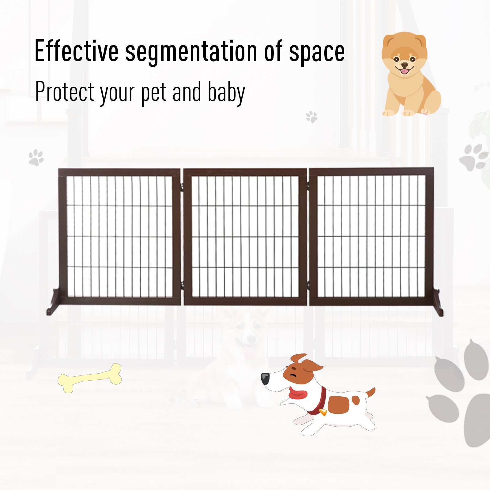 PawHut 3 Panel Pet Gate Pine Frame Indoor Foldable Dog Barrier w/Supporting Foot