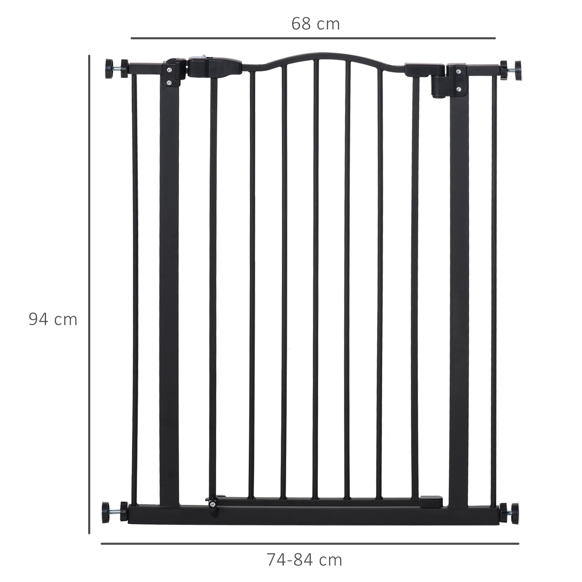PawHut 74-84cm Adjustable Metal Pet Gate Safety Barrier w/ Auto-Close Door Black