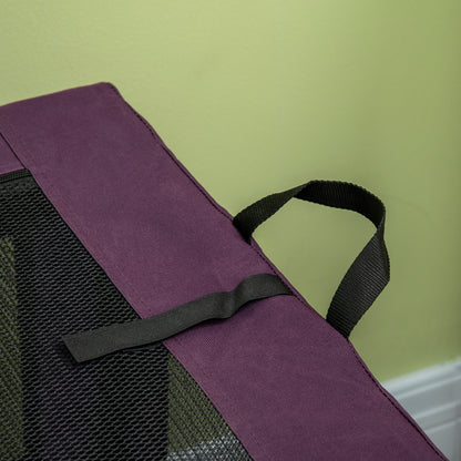 Struggle to travel with pets? With this PawHut cat bag carrier, you'll struggle no more. It has two handles on top, so it's much easier to carry it. Three doors for easy access – they'll enter a spacious area, where they'll relax on a soft cushion, whilst the air flows through the mesh window to keep them cool. It's simple to store with removable tube frame and comes with a bag, saving space when storing. It can also be used at home, so pets have a cosy space for lounging.