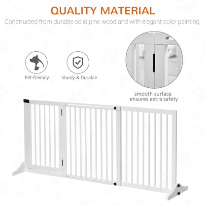 PawHut Freestanding Length Adjustable Wooden Pet Gate with Lockable Door 3 Panels White