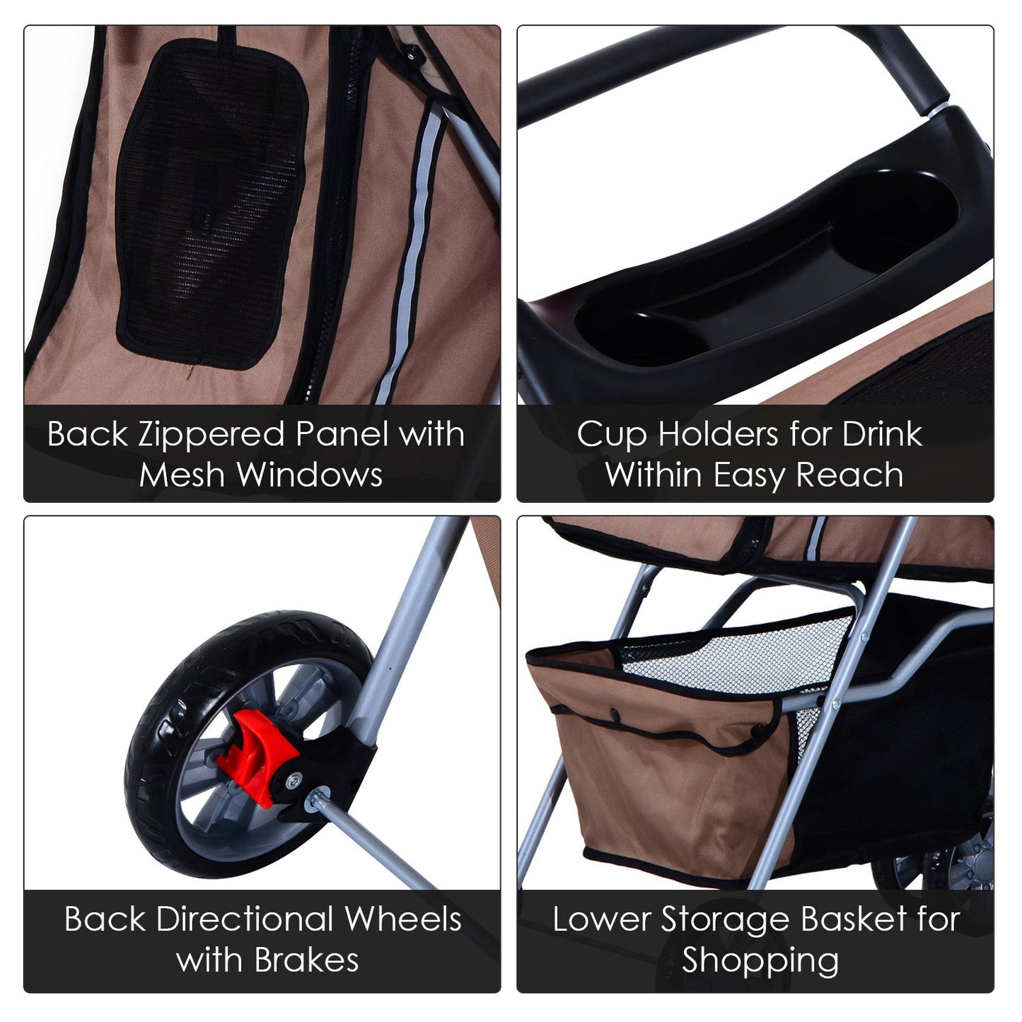 PawHut Oxford Cloth Foldable Dog Stroller Pushchair Pet Trolley w/ Zipper Entry-Brown/Silver