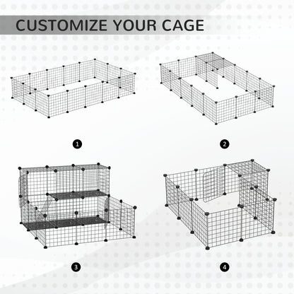 PawHut Pet Playpen w/ Door Customisable Fence for Guinea Pigs Chinchillas Hedgehogs - Black
