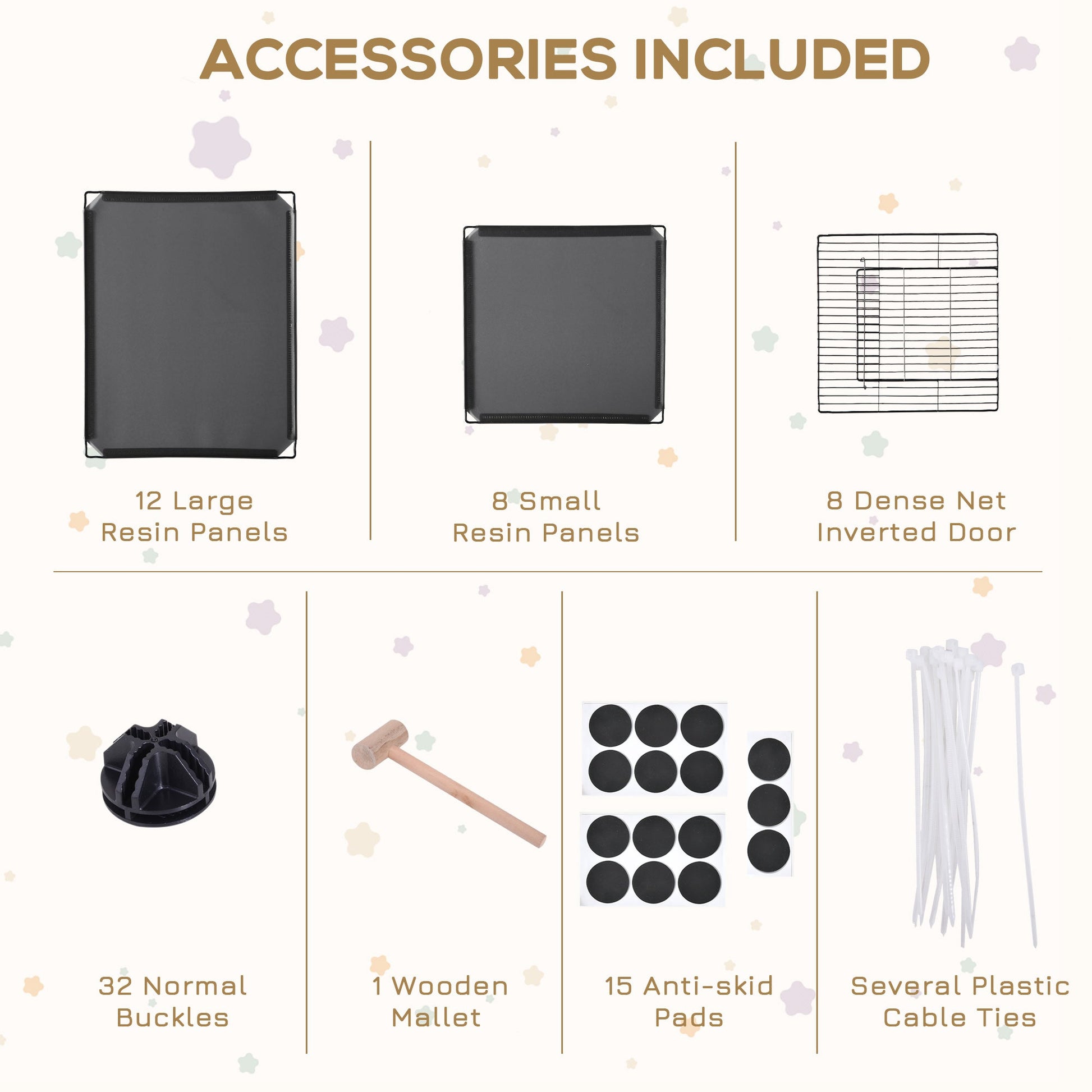 Pawhut Pet Playpen With Door Guinea Pigs Metal Mesh Cage With Mallet Grey