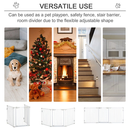 PawHut Pet Safety Gate 3-Panel Playpen Fireplace Christmas Tree Metal Fence Stair Barrier Room Divider with Walk Through Door Automatically Close Lock White