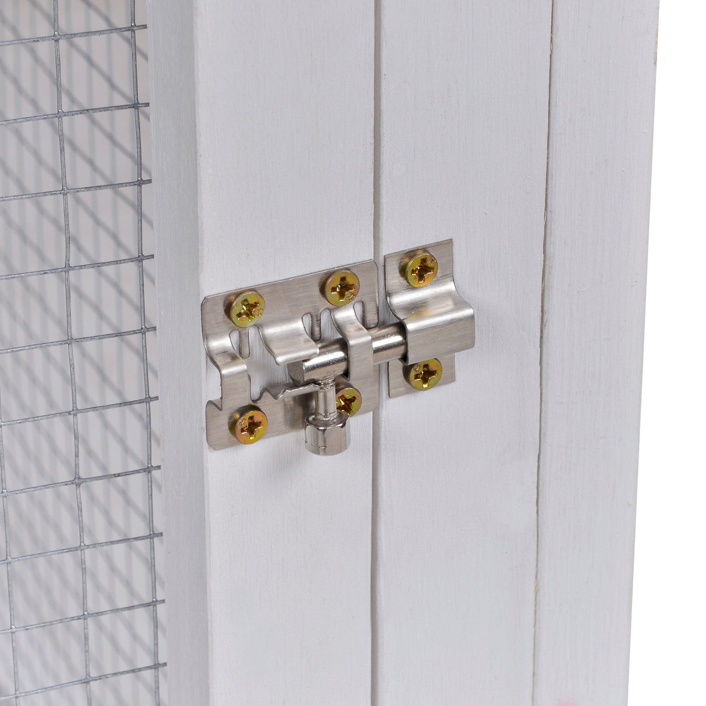 This outdoor rabbit house from PawHut is perfect for use with rabbits, guinea pigs and similar sized animals. It gives a mix of living space - the upper house offers them a private area, whilst the lower area gives them open space for free movement. Lockable doors and the slide-out tray provide easy access for cleaning, feeding and other tasks. Finished with an asphalt roof to keep inside dry from light-medium rain.