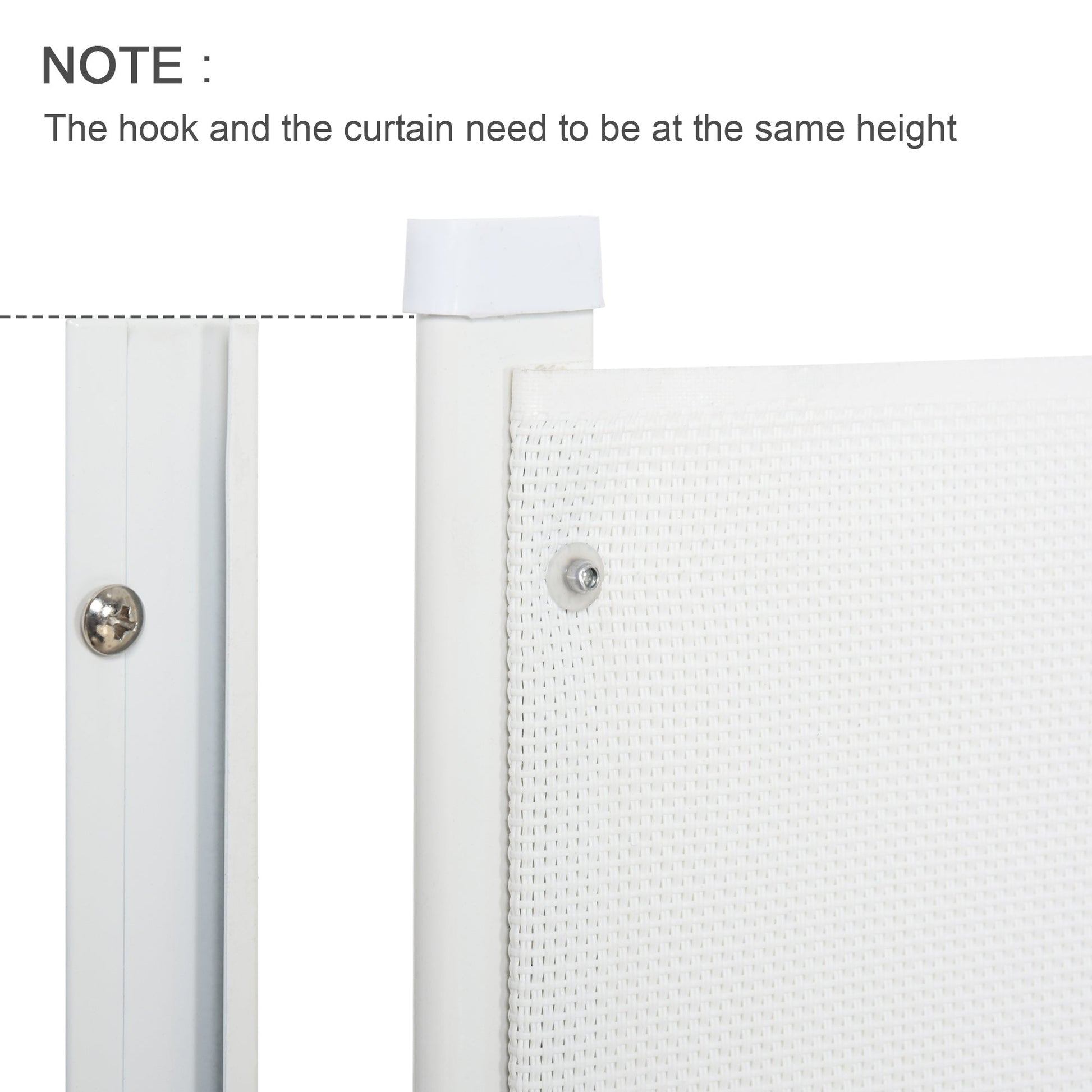 - NOTE: When installing, the hook and the top of the curtain need to be at the same height