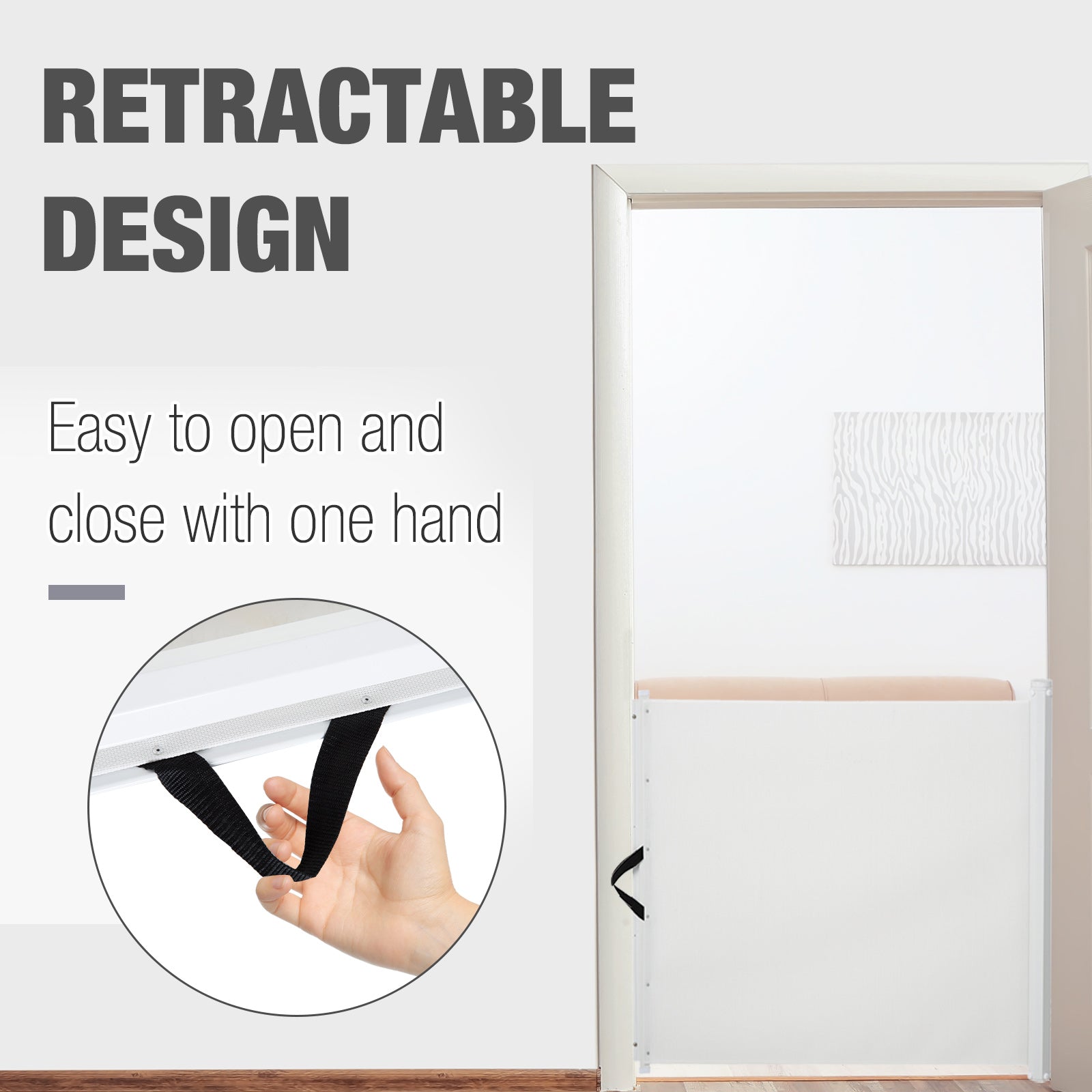 PawHut Retractable Safety Gate Dog Pet Barrier Folding Protector Home Doorway Room Divider Stair Guard White 115Lx82.5H cm