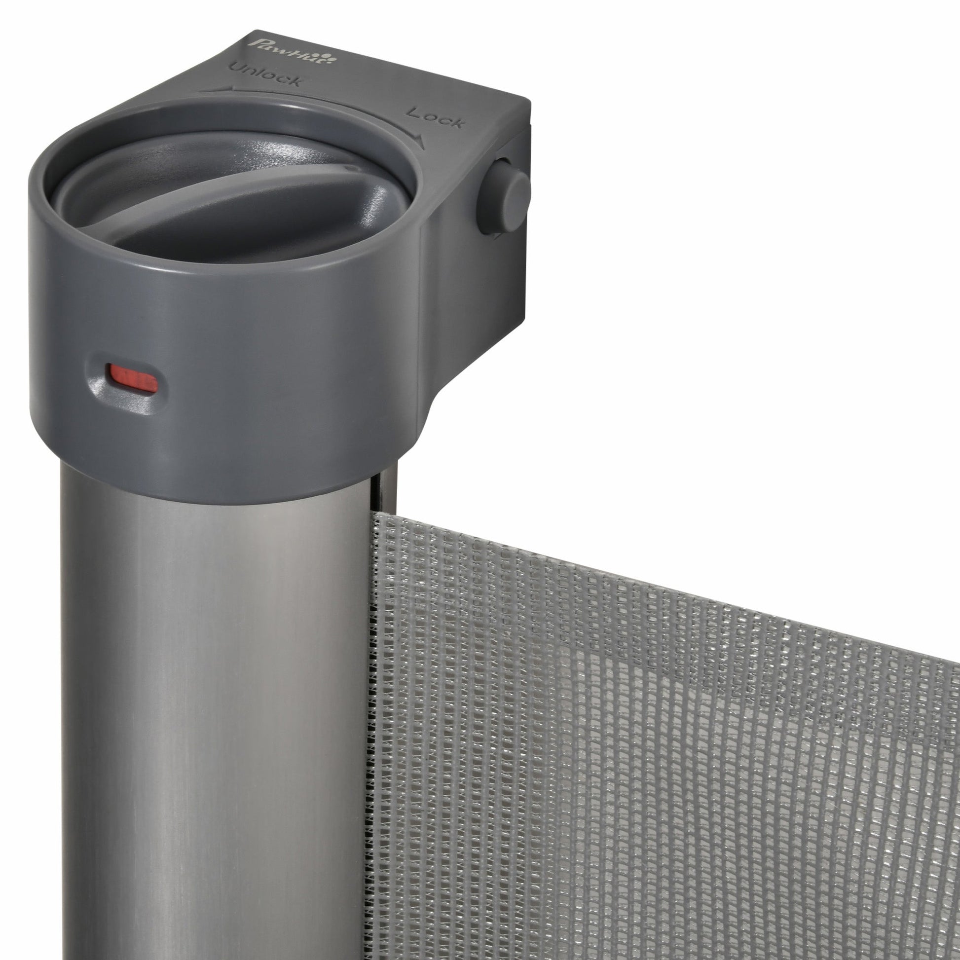 Keep pets from restricted areas with this PawHut retractable dog gate. It expands up to 140cm, making it perfect for doorways, staircases, hallways and entrances. This dog barrier has a switch that locks and unlocks, whilst the knob stops the fixing rod from falling – keeping the fence secure. When it's not being used, remove the fixed base for easy storage and to save space. Have peace of mind knowing pets cannot get to places they shouldn't be.