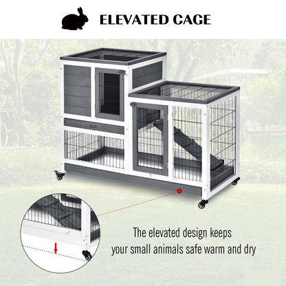 PawHut Small Animals 2-Tier Fir Wood Rabbit Hutch Indoor Grey