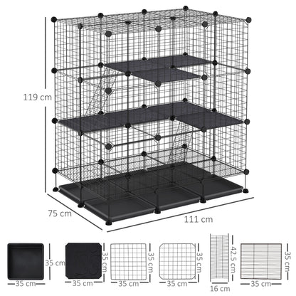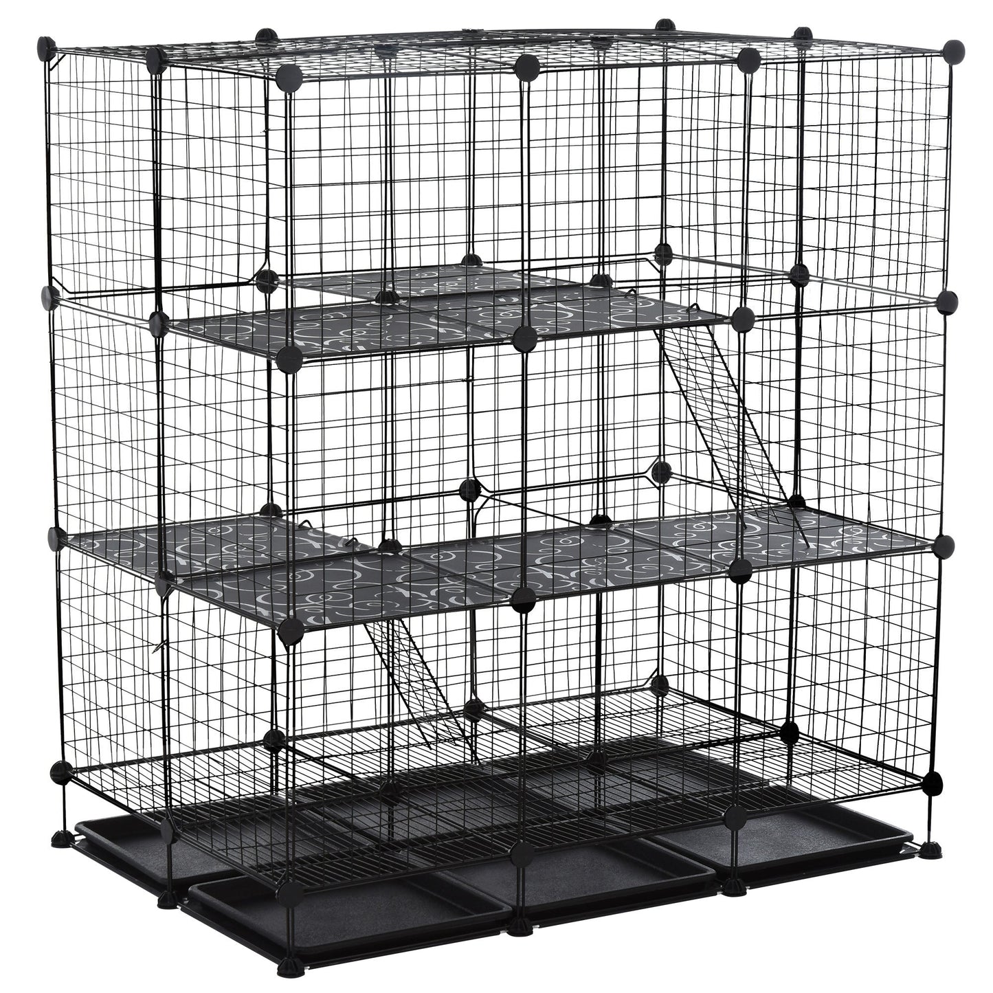 PawHut Steel 3-Tier Small Animal Playpen Cage Black