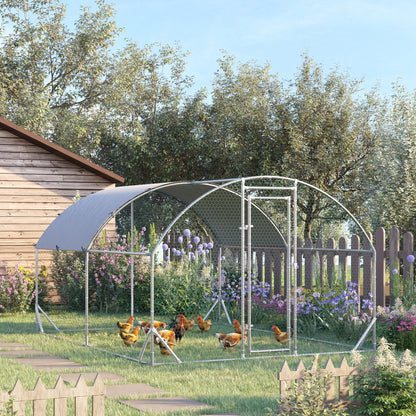 PawHut Walk In Chicken Run Galvanized Chicken Coop Hen Poultry House Cage Rabbit Hutch Pet Playpen Backyard with Water-Resist Cover