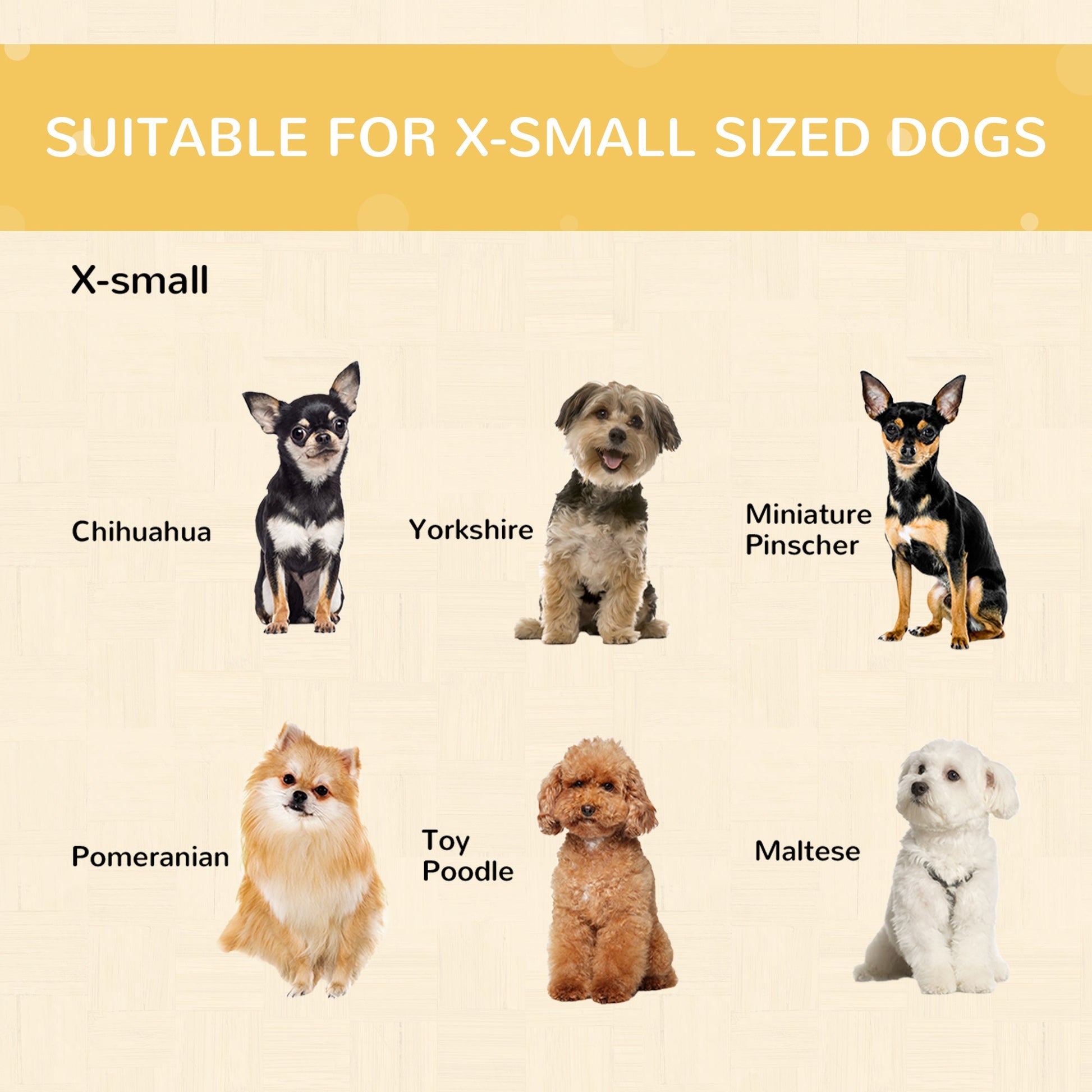 - Suitable for x-small dogs under 4 kg in weight and within 35 cm in length
