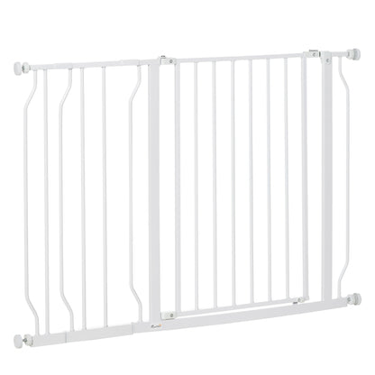 Need to keep pets away from certain places? This PawHut safety gate does the job. Suitable for hallways, doorways and staircases, it has an adjustable width of 75-115 cm – perfect for different sized openings. Made from durable steel, it stays firmly upright when in use – it can also be pressure-mounted, making it easy to set up; a safe and effective way to stop pets from going where they shouldn't.