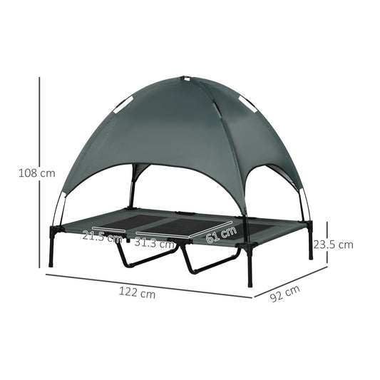 PawHut Raised Dog Bed Waterproof Elevated Pet Cot with Breathable Mesh UV Protection Canopy Grey