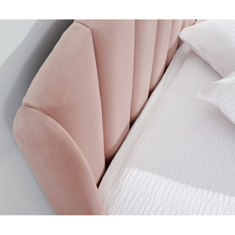 Pettine Double Ottoman Bed Wood & Fabric Pink 5 x 7ft