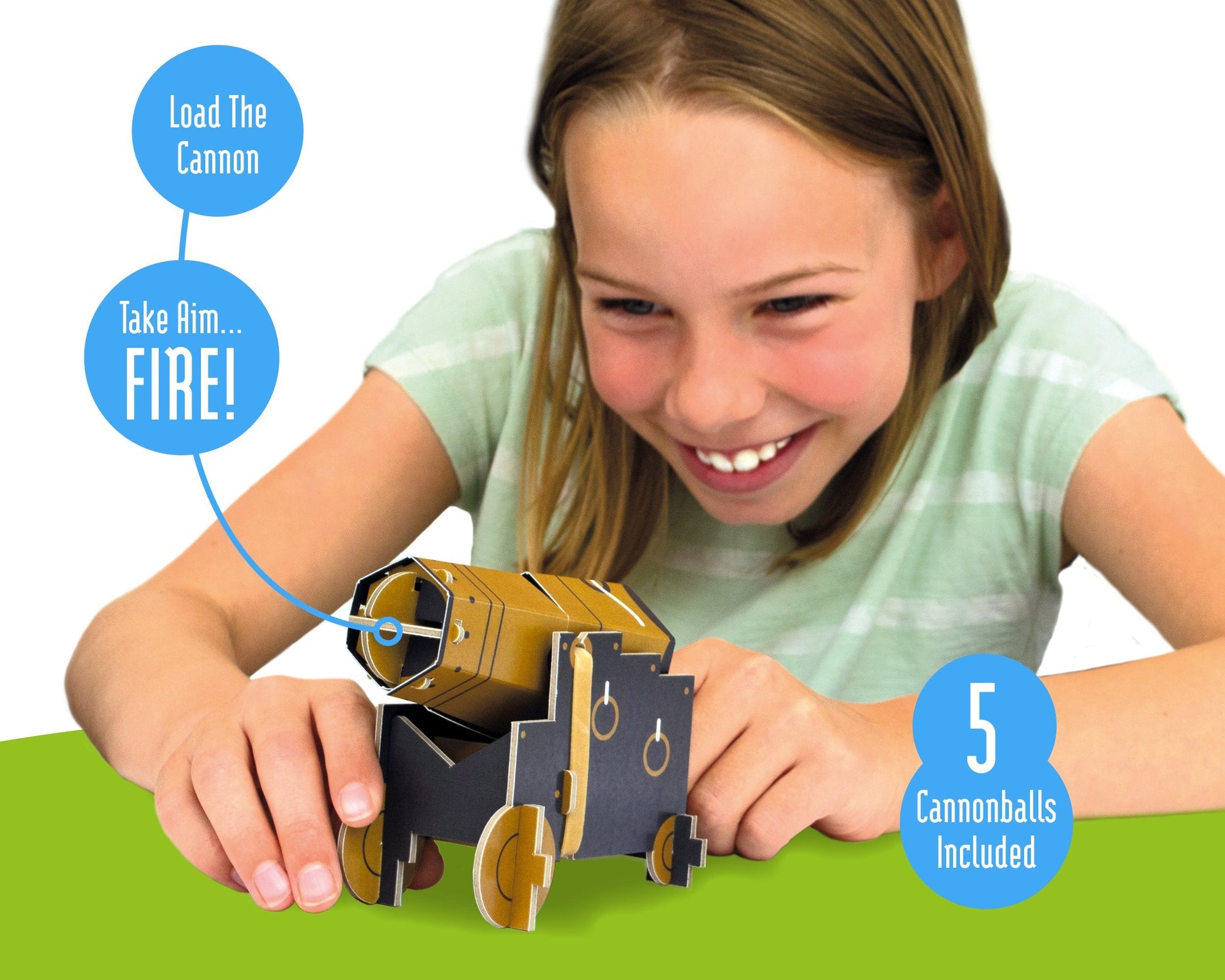 Easy to assemble using slot together techniques – there’s no glue, no mess, no fuss. Everything you need is provided in the kit – simply follow the instructions: press out the pre-cut parts, build and you’re ready to fire your cannonballs!