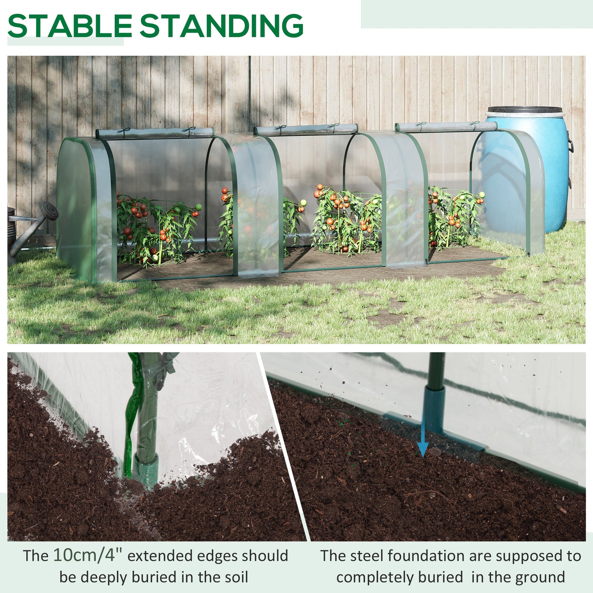 Grow plants, vegetables, fruit and flowers safely all year round with this long tunnel greenhouse from Outsunny. With a powder coated steel frame for strength and durability, it features a durable cover, helping to protect plants from cold, whilst providing plenty of sunlight for them to nourish and grow. The cover also features zipped doors, providing you easy access and ventilation throughout. Lightweight enough to be moved around, this greenhouse is perfect for gardens, patios, balconies and allotments.