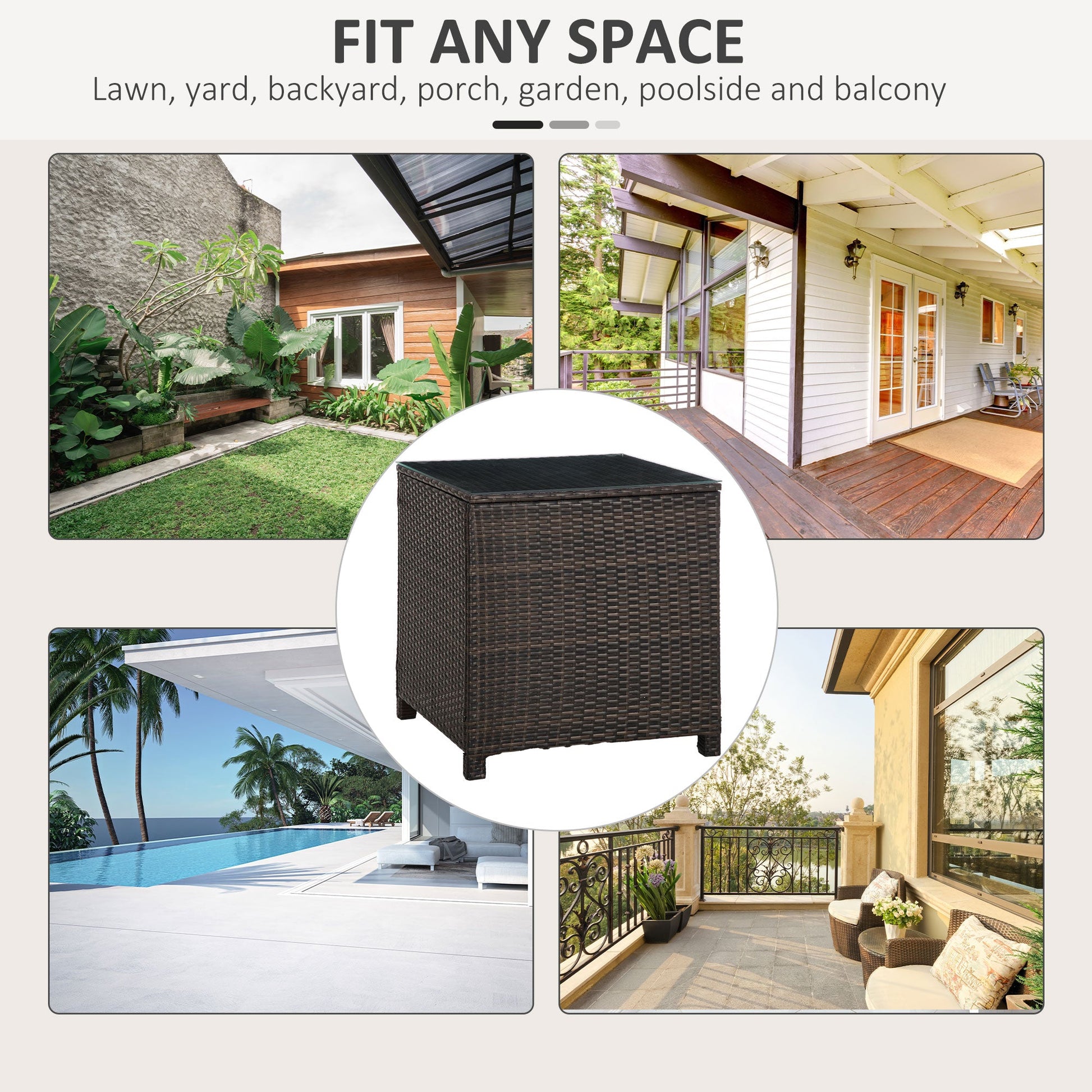Ensure you have the perfect spot to keep everything you need close to your outdoors, thanks to this side table from Outsunny. Square in shape, it has been made with a powder coated and galvanised steel frame, keeping the structure in check and stable, with PE wicker rattan wrapped on the outside, giving it a versatile look which copes with mild weather damage to ensure it will last in your furniture for many seasons. A 5mm thick tempered glass sits on the top, giving it a sleek look and an even surface which can be cleaned easily. Finished with four legs for balance.