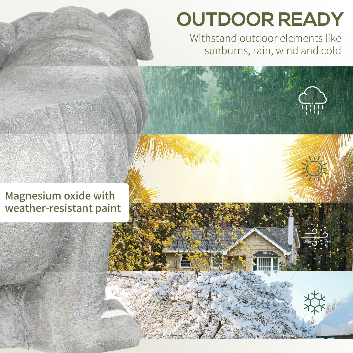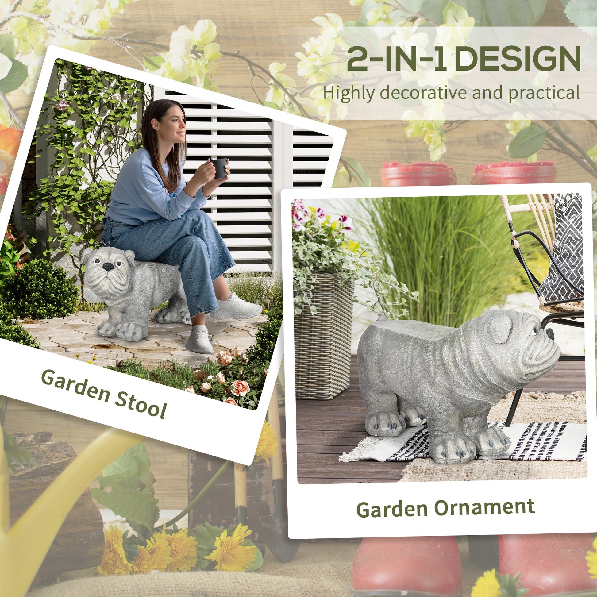 An eye-catching piece for the garden and outdoor areas, with a handy extra touch - this Outsunny dog ornament. Not just a cute piece, the top is flat, acting as a temporary seat. Cute dog design: brings happiness into your chosen space. Tough magnesium ceramic, with weather-resistant paint coating makes it suitable for use all year round. Use indoors or outdoors - the choice is yours.