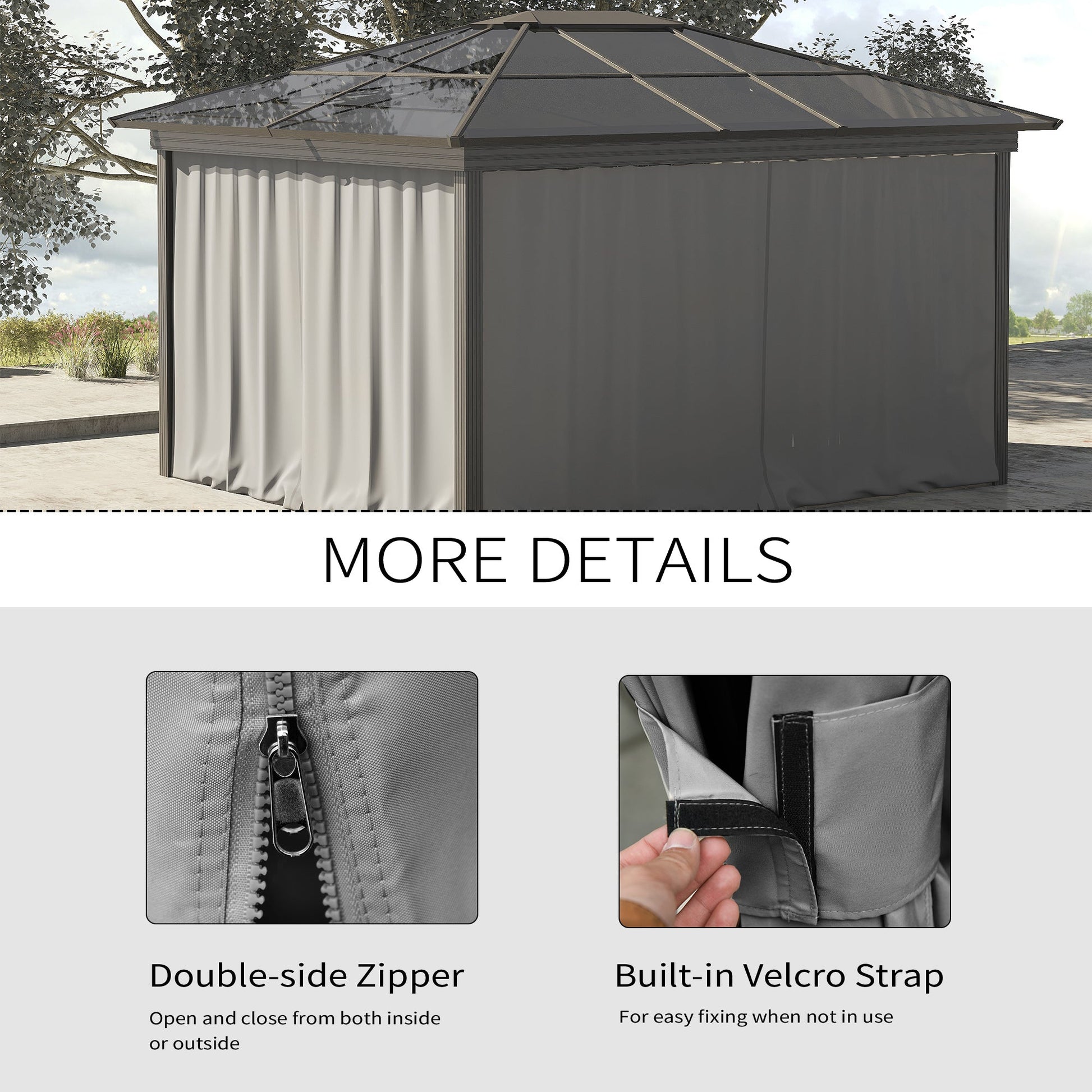 - Works with most 3 x 3m gazebos