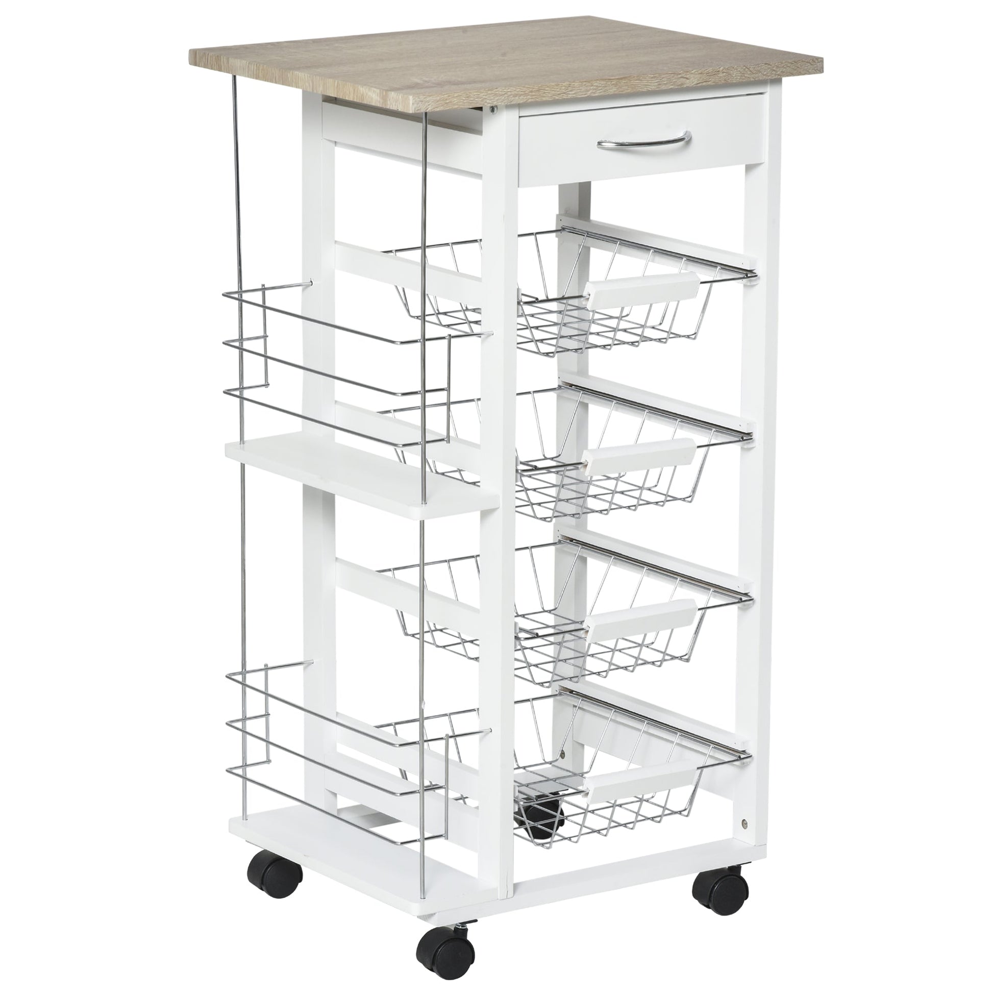 Looking to maximize your kitchen? Need a kitchen storage cart for your apartment or dorm room that won't take up tons of space? This kitchen storage cart features a compact and simple design that can be fit into various styles of decorations. Four slide-out metal baskets offer lots of storage of dry food, fruits and vegetables. Side racks are great for spices and the top drawer for cutlery and utensils and four wheels to ensure easy and smooth movement across the floor.
