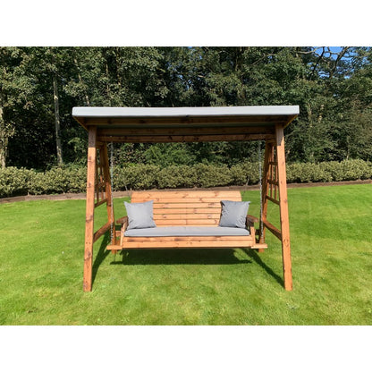 Scandinavian Redwood Garden Swing Seat by Charles Taylor - 3 Seats Grey Cushions