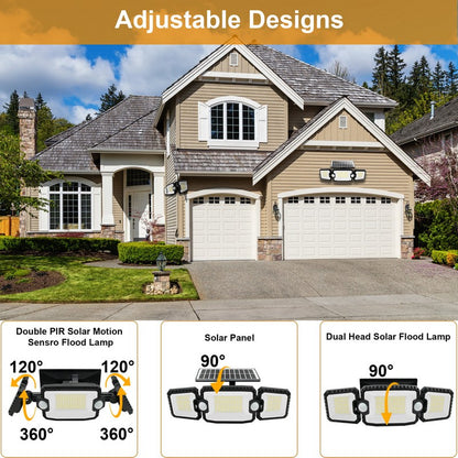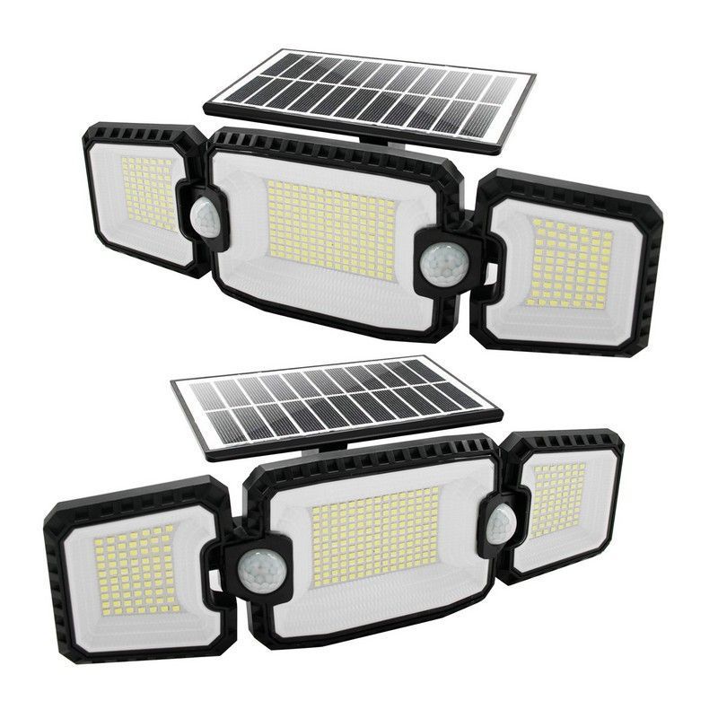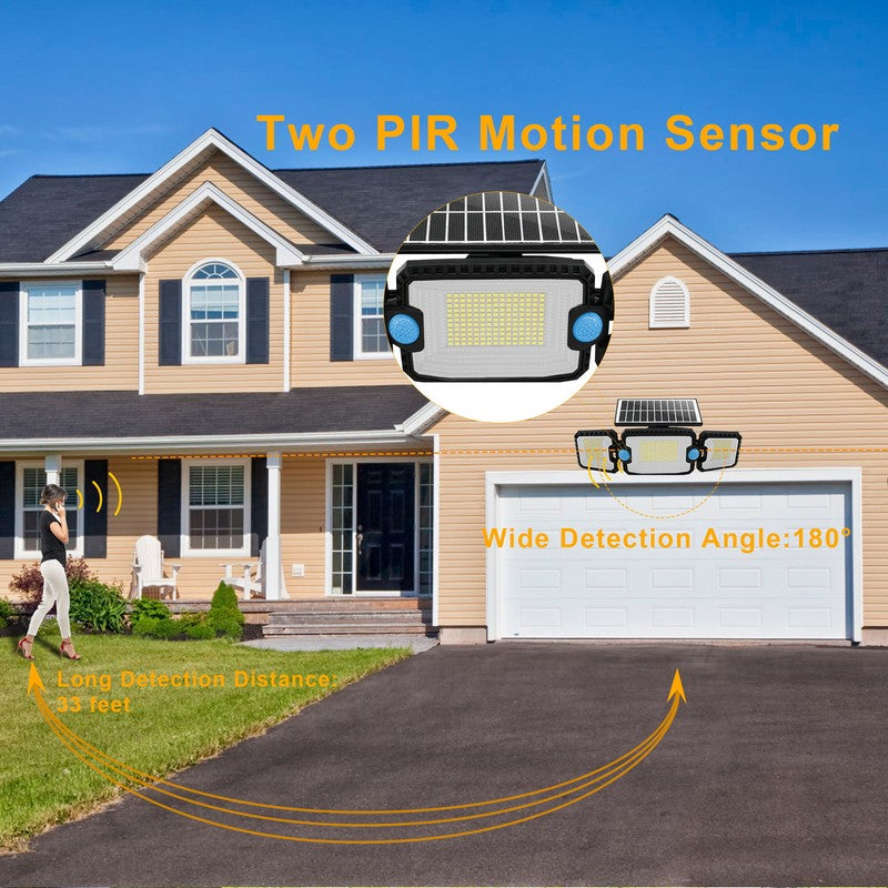 This Solar LED Floodlight has two motion sensors enabling it to detect movement up to 40 feet away. The three lighting heads can be adjusted independently to customise coverage. The central head can pivot 90 ° up and down whilst the two side heads adjust 360 ° up and down, and 120 ° side to side.