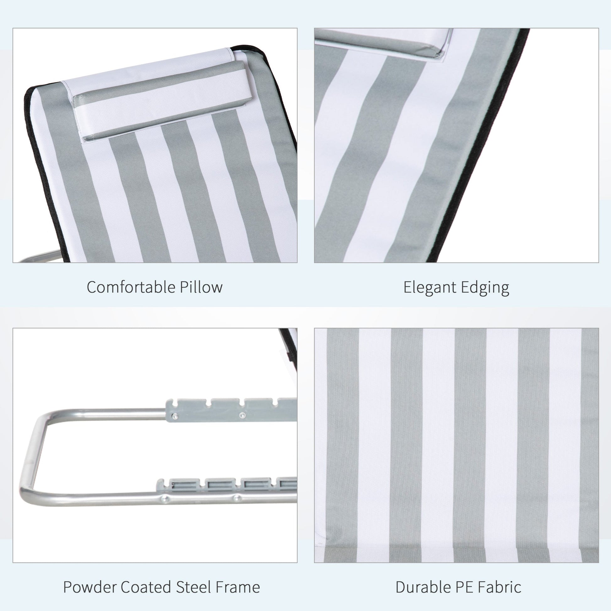 Set Of 2 Beach Mat Seat Adjustable Back Metal Frame Fabric Cover Foldable w/ Bag
