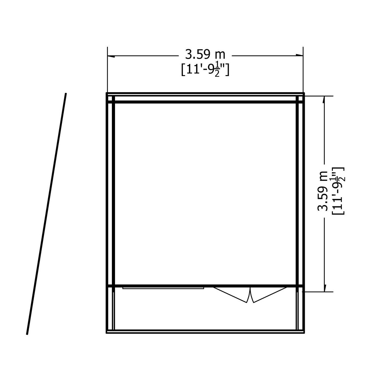 Please note - size 11' 9" x 11' 9" is approximate and based on a bird's eye view of the structure, including the roof.