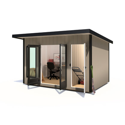 Shire Cali 8' 5" x 12' Pent Garden Office with Storage - Premium Wax Board