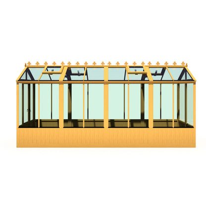Featuring Shire's quality joinery and completed with an attractive finial and cresting to the roof, the Holkham is both practical as well as charming. The low wooden panels also add a very traditional detail to this lovely building. The greenhouse is glazed with toughened glass and has a single door with traditional gate latch handle. Roof windows have an automatic Bayliss opener supplied. As usual with a greenhouse, no floor is supplied and the greenhouse sits on a pressure treated base rail. Grass, soil or gravel are not sufficient as they will move with the weight of a building. This product is part of the Holkham collection.