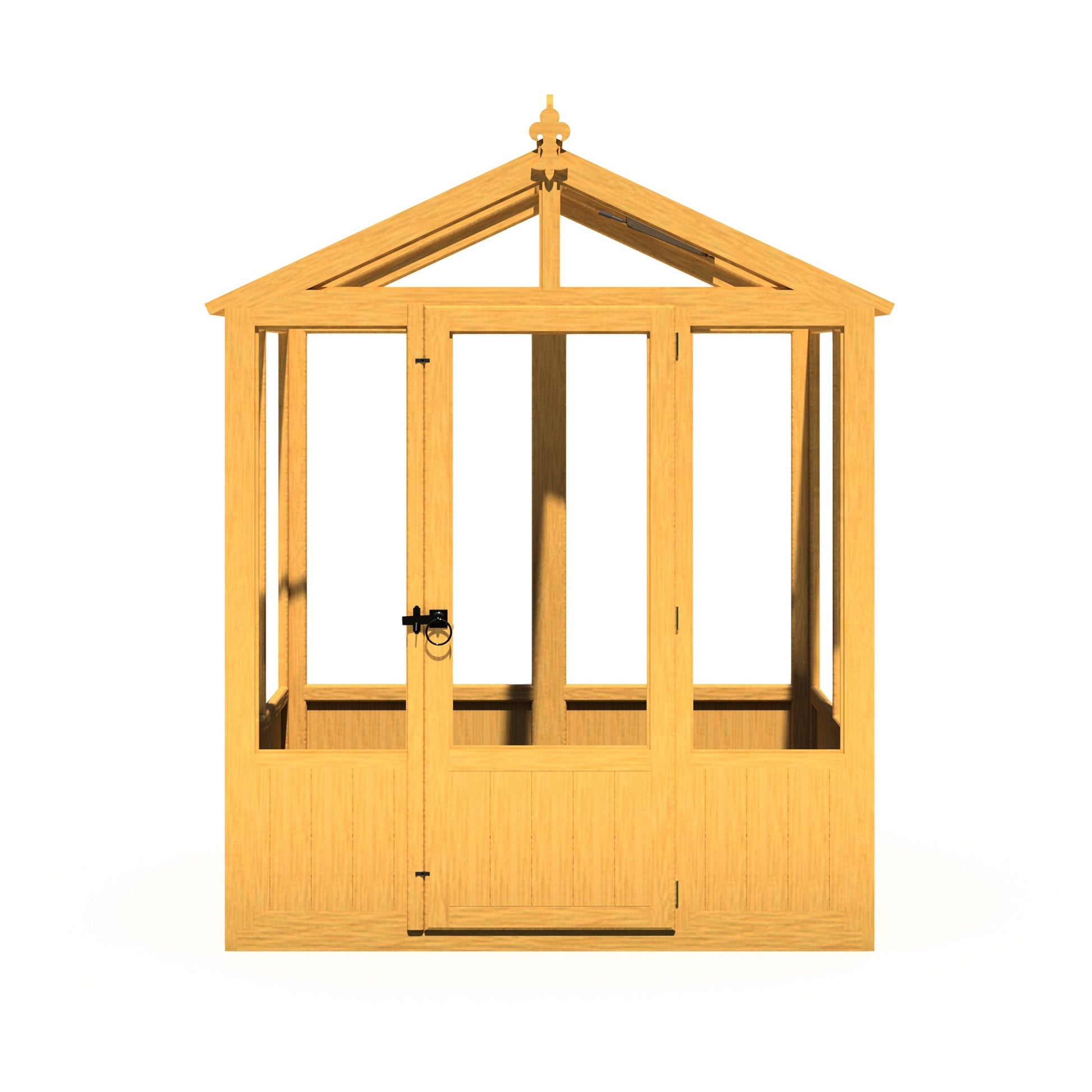 Featuring Shire's quality joinery and completed with an attractive finial and cresting to the roof, the Holkham is both practical as well as charming. The low wooden panels also add a very traditional detail to this lovely building. The greenhouse is glazed with toughened glass and has a single door with traditional gate latch handle. Roof windows have an automatic Bayliss opener supplied. As usual with a greenhouse, no floor is supplied and the greenhouse sits on a pressure treated base rail. Grass, soil or gravel are not sufficient as they will move with the weight of a building. This product is part of the Holkham collection.