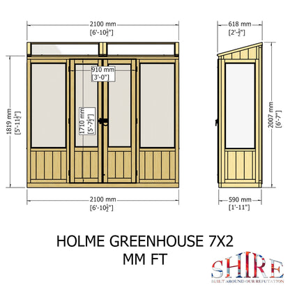 Shire Holme 1' 8" x 6' 10" Pent Greenhouse - Classic Coated